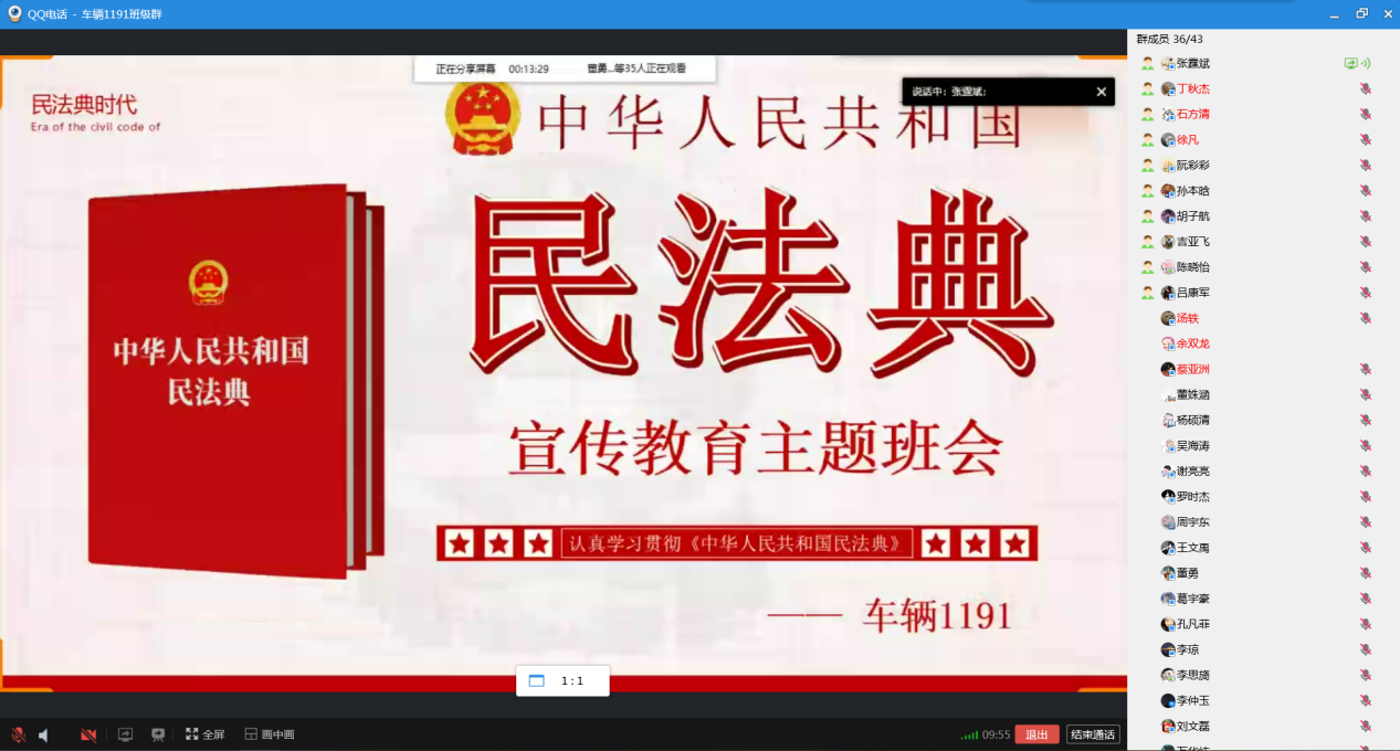 活动期间,各班每晚开展一个关于民法典知识宣传的班会,增强同学们的法治观念和守法意识;每位同学每天进入“央视频”app观看《民法典进行时》,学习如何将法律知识运用到实际生活中来加强自我保护。与此同时,班长还以同学们喜闻乐见的形式,为大家具体讲解《民法典进行时》中的案例,帮助大家树立起守法观念。部分同学还利用抖音短视频开展普法知识的宣传,开拓碎片化普法新阵地,使同学们更简洁明了地明白了法治教育的重要性,真正做到学法懂法遵法普法。