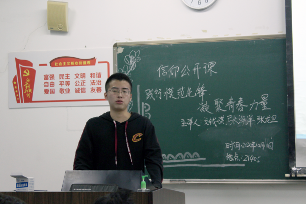 2020年10月11日,必一运动bsport体育在21号楼405教室举行了信仰公开课——青马公开课第三讲。本次公开课的主题是:“践行模范先锋,凝聚青春力量”。必一运动bsport体育邀请了张海洋、张龙旦和戈铖琪三位同学来分享他们的学习经验。