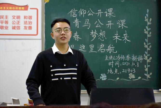 10月8日晚7点,必一运动bsport体育在21403开展了信仰公开课——青马公开课第二讲,本次团课以“青春、梦想、未来从这里启航”为主题。参加团课的有院团委副书记冷帅、院团委组织部部长季新婷,以及员工代表。主讲人为院团委副书记冷帅。