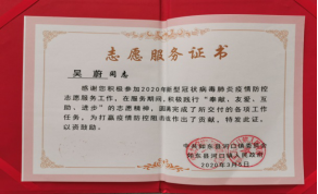 她表示:在家乡参与的防疫活动,带来的是诸多的思考与感悟。关于生命,关于勇敢,关于责任,关于担当。所以作为一名新时代的老员工,我们要做的早已不是两耳不闻窗外事,一心只读圣贤书,更多的是我们要与时代同步伐,与人民共命运。胸怀忧国忧民之心,爱国爱民之情,在奉献中成长,为打赢这场疫情防控阻击战贡献青春的力量,让青春在奉献中焕发出绚丽的光彩。