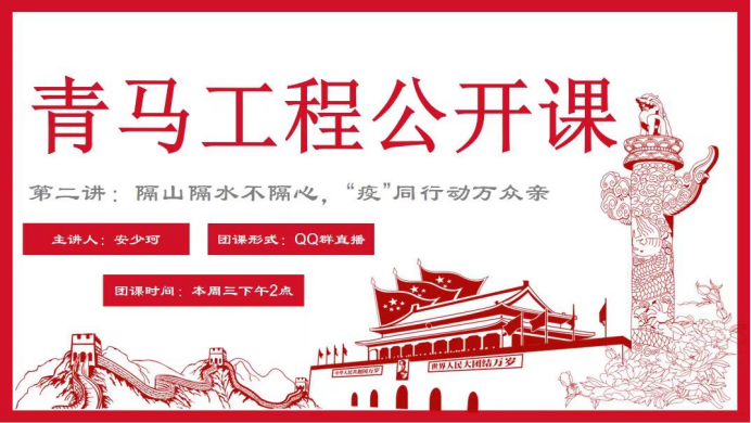 团课开始,安少珂同学首先跟我们分享了一段视频。该视频展现的是全国各地的医疗工作者与一线医护人员共同抗“疫”的情景。伴随着触人心弦的背景音乐,我们可以看到,视频中的医护人员们团结一心、互帮互助,全心全意地投入在抗“疫”事业中。学员们纷纷被他们那舍己为人、担当风险的精神以及他们在危难前的互相扶持所感动。