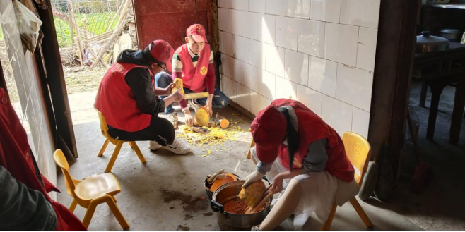 在队长的引导下,青年志愿者们来到了蔬菜村一户家庭贫困且有两个特殊儿童的奶奶家中。奶奶热情地招呼青年志愿者们进屋,青年志愿者们礼貌地与奶奶和阿姨打招呼。随后,探望特殊儿童并为他们送去礼物。对于青年志愿者们的到来,奶奶和阿姨都感到十分欣喜。青年志愿者们耐心地向奶奶询问了两位孩子的身体状况,然后,陪着奶奶聊聊心事,寒暄家常。随后,志愿者们各司其职,帮助奶奶做力所能及的家务,其中包括洗衣服、晾晒衣物、打扫地面和墙面、摘菜、做饭等。