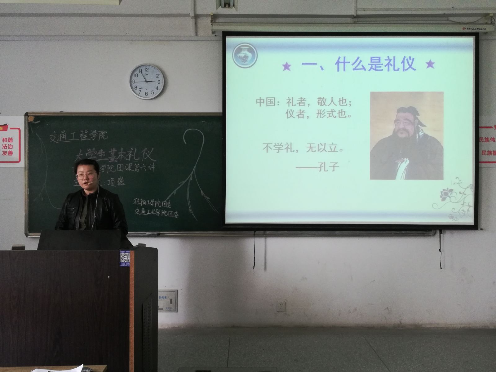 团课一开始,项老师采用体验式教学法让同学们体会到课堂礼仪的重要性,使同学们感受到融入课堂,课堂互动,师生互相尊重,遵守课堂礼仪对于课堂教学效果的提升作用。随后,项老师从“礼”、“仪”二字的解释——礼以待人,仪以修身,开启了礼仪的教学之旅。老师用PPT向同学们展示了“中国游客”的不文明表现对国家形象的损害,讲述了最近新闻里面“中国大妈”在进口博览会里面疯抢免费食品的不文明行为,启发同学们思考和发现身边的不文明行为,由大到小,由浅入深地使同学们体会到讲文明,学礼仪于国于身的意义。之后,项巍老师细细地向同学们讲述了礼仪的定义,意义和重要功能。礼仪的定义就是人们在社会的各种具体交往中,用于表示尊重、亲善和友好的首选行为规范和惯用形式。礼仪具有四个重要的功能:1.完善个人形象 2.提高老员工心理素质 3.提高老员工人际关系的处理能力 4.提高老员工职业素质。最后,项巍老师从仪容、服饰、举止、表情等方面教同学们如何注重自己的仪容仪表。最后,项老师强调了在网络虚拟世界也要遵守礼仪,尊重他人,同时注意自我保护,对网络交友和网络诈骗保持警惕心。
