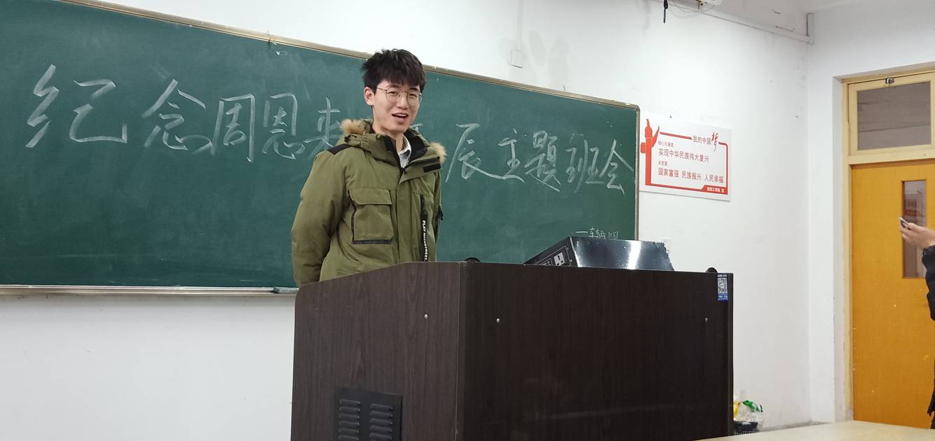 活动伊始,各团支部通过丰富多彩的形式活跃氛围,带动同学们的积极性,将恩来精神融入活动中,增强同学们的理解。随后,同学们精雕细琢,在黑板上写下自己心中那三句诗词表达对周总理的深深怀念。并用诵读的方式和班级同学们分享。之后,活动组织者讲述周总理光辉事迹,缅怀总理的卓著功勋。最后,同学们畅谈对恩来精神的理解,将气氛推向高潮。至此,本次活动也圆满结束。
