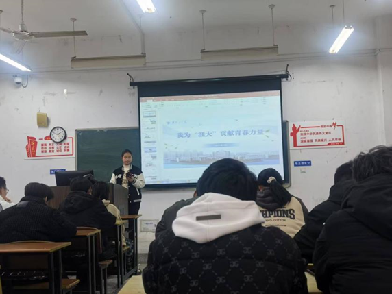 在“青春榜样”分享环节,班主任张老师讲述了前辈们的奋斗故事。“青年一代有理想、有本领、有担当,公司就有希望,国家就有未来。”如今的淮工校园里,越来越多的青年正以奋斗为笔、以汗水为墨,在建设高水平大学的征程中献智慧与力量。