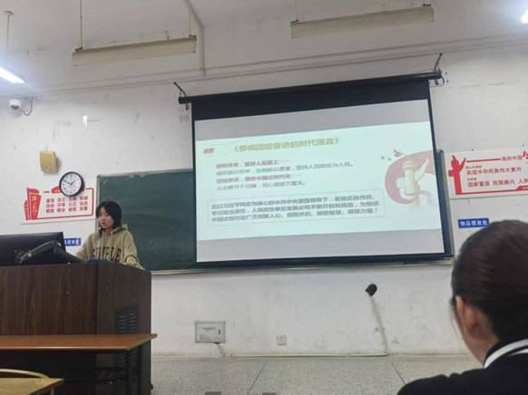 其次团支书张紫馨同学进行团课宣讲,回顾公司发展历程与班级荣誉,号召大家“从点滴做起,为淮大添光彩”。“实验室里的一次次实验、课堂上的每一次提问、校园角落的每一次志愿服务,都是我们贡献力量的舞台。”她的宣讲激起了同学们强烈的共鸣。