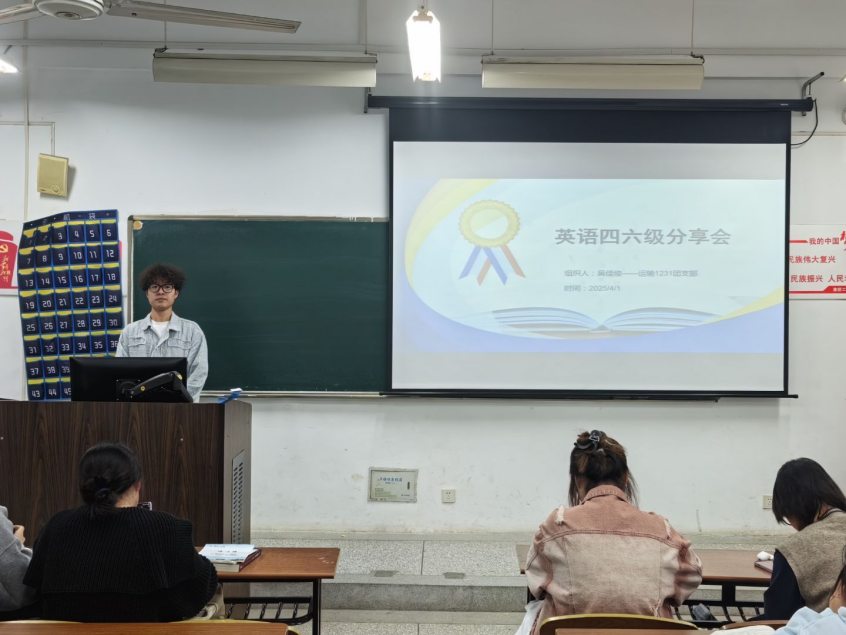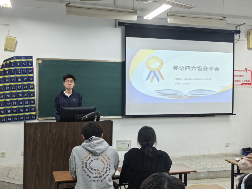 为助力班级同学科学备战全国大学英语四六级考试,营造互学互助、共同进步的备考氛围,4月1日晚,运输1231班举办“四六级经验分享会”。活动邀请班级四级高分通过者及六级备考达人分享实战技巧,通过经验交流、互动答疑、资源整合等形式,为同学们冲刺考试注入信心与动力。