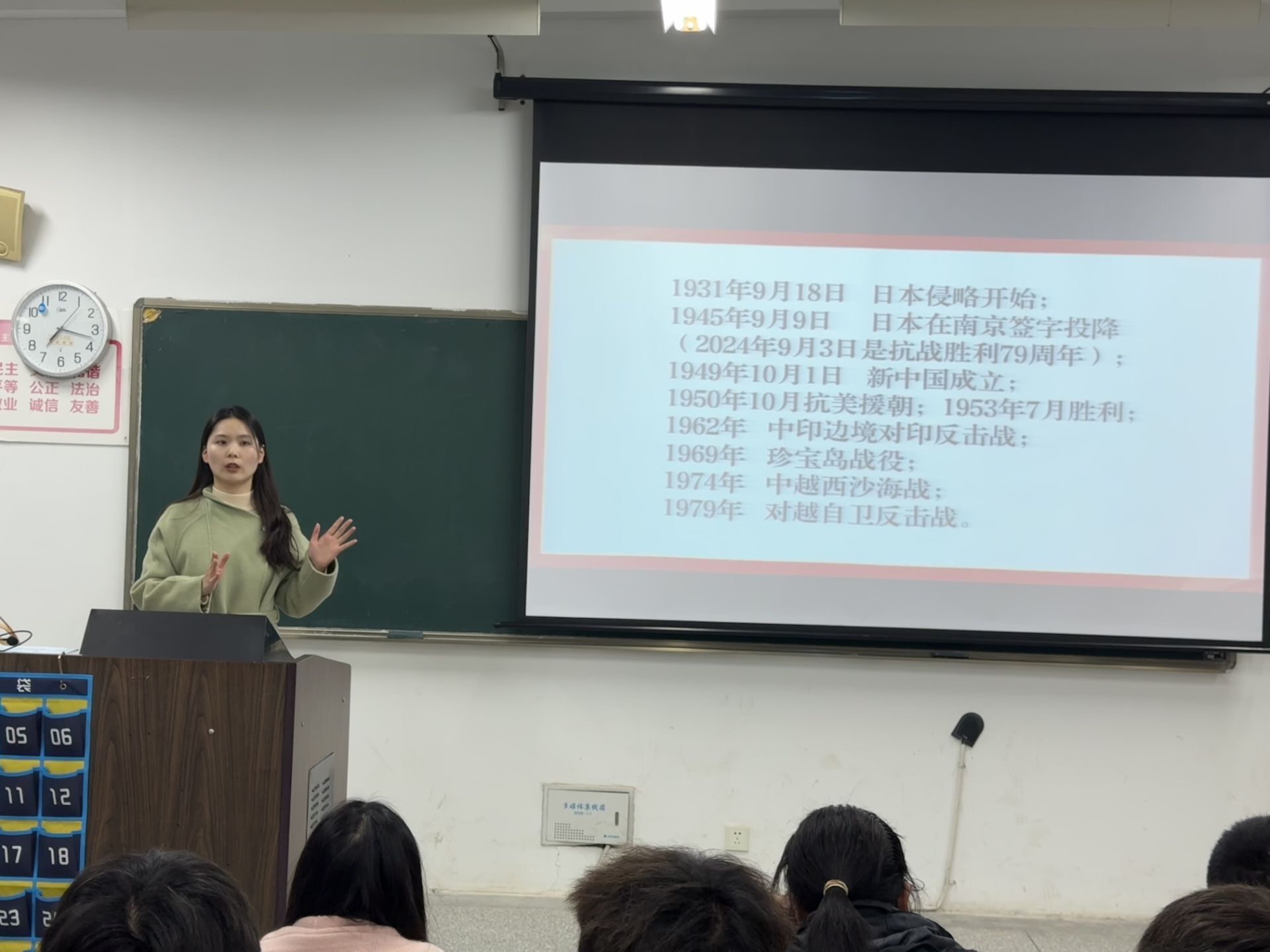 顾秉健老师结合一段关于抗美援朝战役的视频,向同学们发出了“你还记得吗”的疑问,指出了如今许多老员工把一些英雄事迹和爱国精神仅仅当做了需要掌握的知识点,循规蹈矩机械性背诵记忆,很少用心感悟、体会、践行。就这一问题,顾秉健老师又提出了“我们应该记住什么”“我们为什么要记住”“我们该如何铭记?”三个问题,并通过这三个问题,由浅入深的引导、教育同学们要深刻认识我们并非生活在和平的世界,只是生活在和平的国家、和平的年代,要时刻铭记先烈、前辈们一路走来的坎坷艰辛,并结合自身专业去传承、弘扬爱国精神,赓续红色血脉。