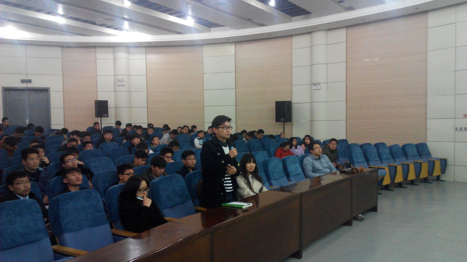会上,黄凯学长就自身考研经历给同学们提了许多的建议。他从如何择校、如何安排自己的备考学习时间、各基础科目的复习方式等方面做了详细的阐述。其中他强调了要明确目标,慎重择校。之后,他又介绍了研究生的生活情况以及别业后的就业情况。最后,黄凯学长热心地解答了同学们关于考研的疑惑。