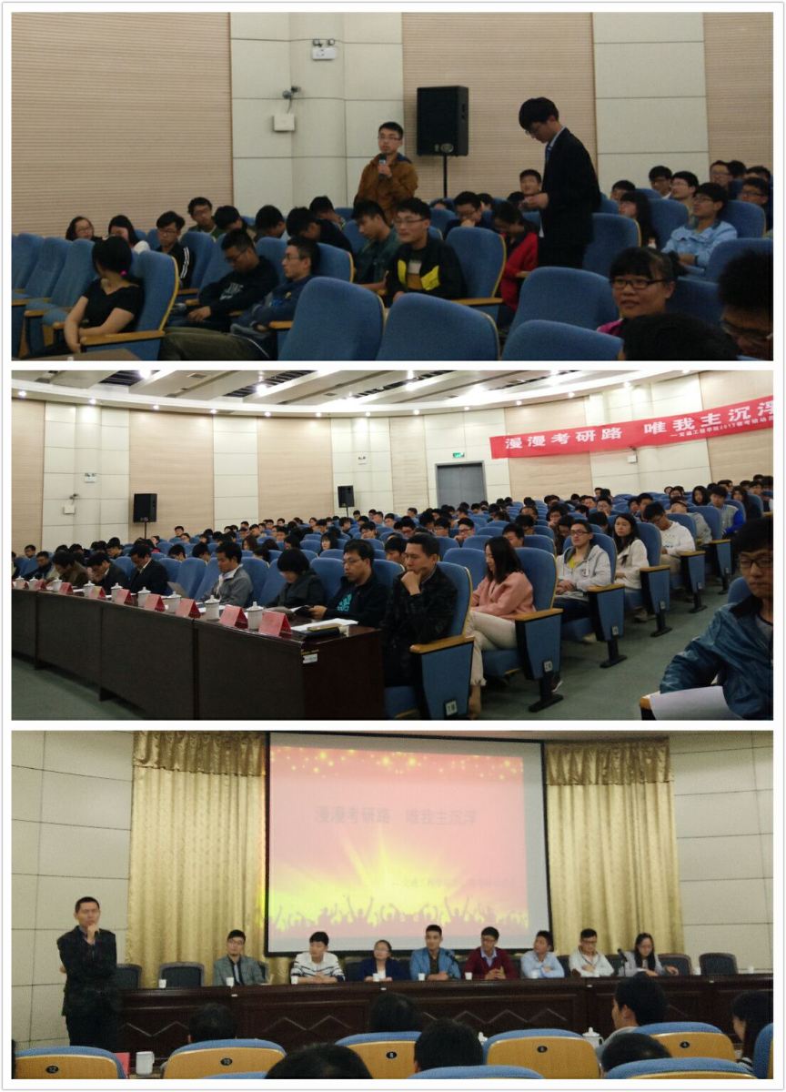 学长学姐们则分享了考研心得并耐心回答了学弟学妹们提出的问题。学长学姐的鼓励,让同学们对于考研有了更确切的认识。大三考研代表徐翔宇做了表态发言。