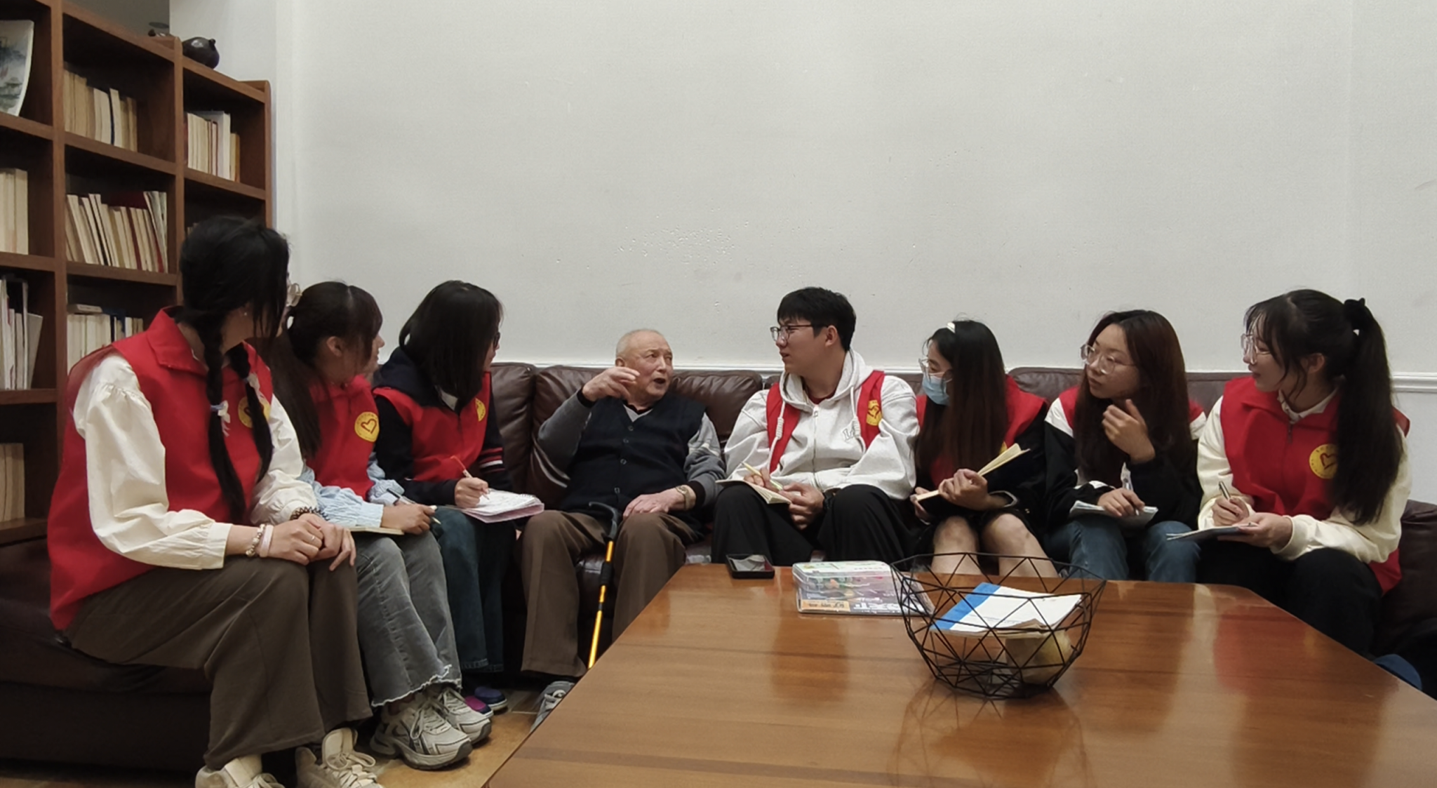 4月28日,在顾秉健、冯科儒两位老师的带领下,访谈小组前往张继孝爷爷家进行采访慰问,访谈小组围绕“当代青年应该如何建功立业”进行采访。张继孝爷爷从自身经历出发,叮嘱同学们:“无论是在公司还是在社会,你们要学会并熟练掌握一门技能,提高自己的动手实践能力,将来能够更好地服务社会。”