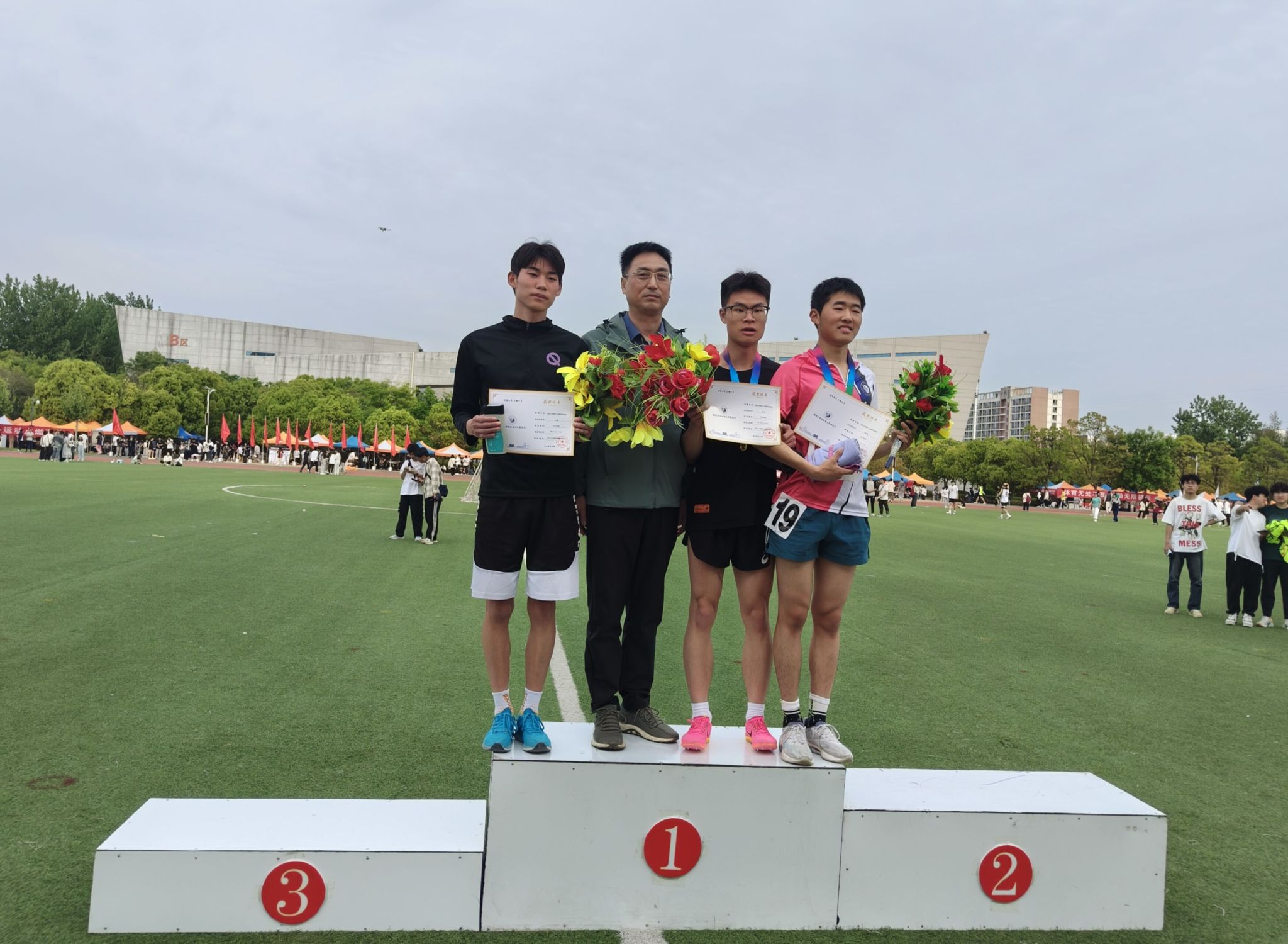 运动场上,运动员们挑战自我,勇攀高峰,展现出极高的竞技水平,刻画青春的勃发与坚韧。经过激烈的比赛角逐,公司冷飞飞同学分别荣获女子1500米和3000米冠军,梁斯奥同学荣获男子个人引体向上冠军,团体引体向上冠军,团体定点投篮亚军,男子15*400米大接力亚军。他们用速度与力量诠释了体育精神,赢得了观众们的阵阵喝彩。运动场下,看台上的观众们欢呼雀跃,热情洋溢,为运动员们加油喝彩。加油声、呐喊声此起彼伏,整个校园都沉浸在热烈的氛围中。
