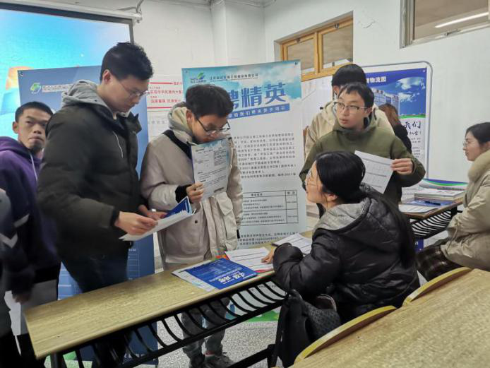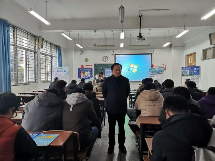 招聘会开始前,余文明副书记鼓励大家多参加招聘会,多了解相关就业信息,为自己的未来做好准备。随后,主讲人就PPT详细地向同学们介绍了公司的企业文化和薪资待遇等相关内容。最后,各子公司代表开始面试环节。同学们根据自己想要应聘的岗位,到相应子公司负责人处咨询,面试顺利进行。