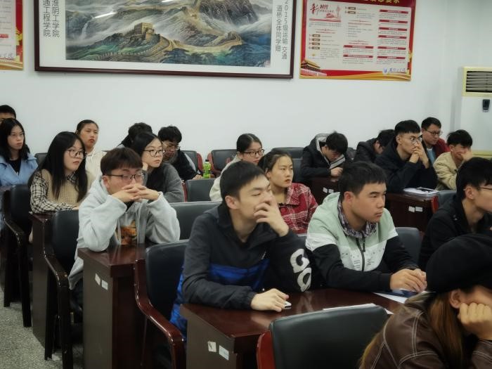 首先,公司党委副书记、副经理余文明向同学们阐述了中国人民财产保险股份有限公司南通市分公司的一些简单情况。其次,周经理通过PPT和面对面交流的形式向在座的毕业生们介绍了公司的文化、发展、荣誉、组织架构、招聘岗位、晋升通道和福利待遇。中国人民财产保险股份有限公司南通市分公司(以下简称“南通人保财险”)是南通财产险行业规模最大的保险主体,拥有遍布全市城乡的机构网络,下辖如皋、海门、海安等9个县(区)支公司及5个专营单位。2018年南通市分公司实现保费收入29.2亿元,同比增长5.72%,市场份额占比41.45%,保费规模在江苏省位列第四位。公司从2010年起,连续七年荣获全国系统“城50强公司”,先后获得全国系统“先进集体”、全省系统“标兵公司”、“江苏省文明单位”、“江苏省放心消费创建活动先进单位”、“江苏省模范职工之家”、“江苏省平安金融示范单位”、“南通市纳税50企业”、“南通市市民最满意保险公司”、“南通市最具社会责任保险机构”等荣誉称号。周经理还表示:本公司为央企,且近年来业绩逐渐上升,公司发展形势良好;另外,公司福利待遇好、食堂伙食好、宿舍环境好,与其他公司相比最为突出的优势在于:公司下属的县市分公司很多,工作岗位相对较多,同学们步入公司后可以更好的拓宽自己的眼界。最后,周经理对有应聘意向的同学进行了简单的面试。