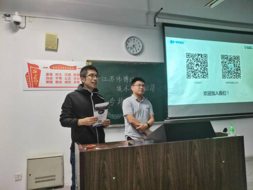 招聘会上,主讲人首先给同学们播放了一段企业宣传片,让同学们了解了江苏伟博动力技术有限公司的基本情况。之后主讲人通过ppt进一步让同学们了解公司情况。江苏伟博动力技术有限公司是一家提供汽车核心零部件工程技术解决方案的技术研发类高新技术企业,由动力总成标定、产品开发应用及智能制造装备三大事业部组成。伟博先后获得“国家高新技术企业”、“江苏省科技型中小企业”、“工程技术研究中心”等荣誉称号;到目前为止,伟博科技已取得近百项重要发明及实用新型专利。近年来,伟博科技各业务板块在各自领域稳步发展壮大。未来几年伟博科技将加快高端人才引进和自身人才阶梯培养步伐,整合国内外高端人才团队,力争在科技创新研发、创新研发、技术服务应用等方面有所突破,顺势加速整合细分市场,成为国内极具特色的高科技企业。最后,王老师对同学们就业问题提出了自己的建议,鼓励同学们积极参加面试。伟博科技负责人对有意愿的同学们进行了一个笔试环节。