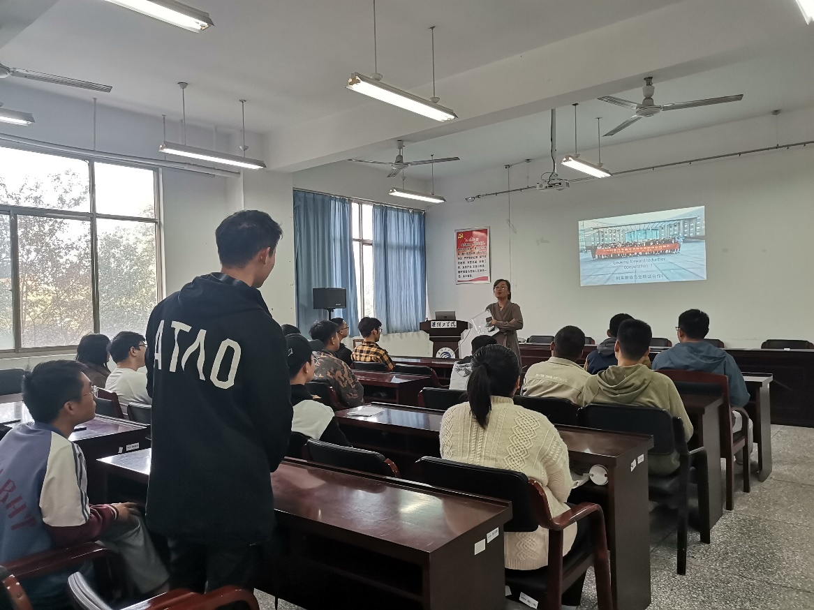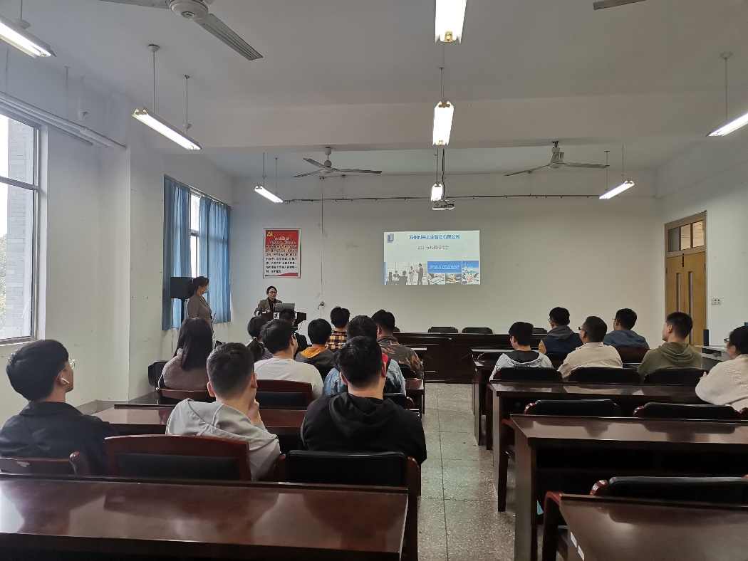 招聘会开始,公司负责人通过PPT从关于我们、公司福利、老员工职业生涯规划、岗位需求四个方面介绍公司情况。会场气氛良好,同学们认真了解该企业,为自己的就业发展做出慎重考虑。