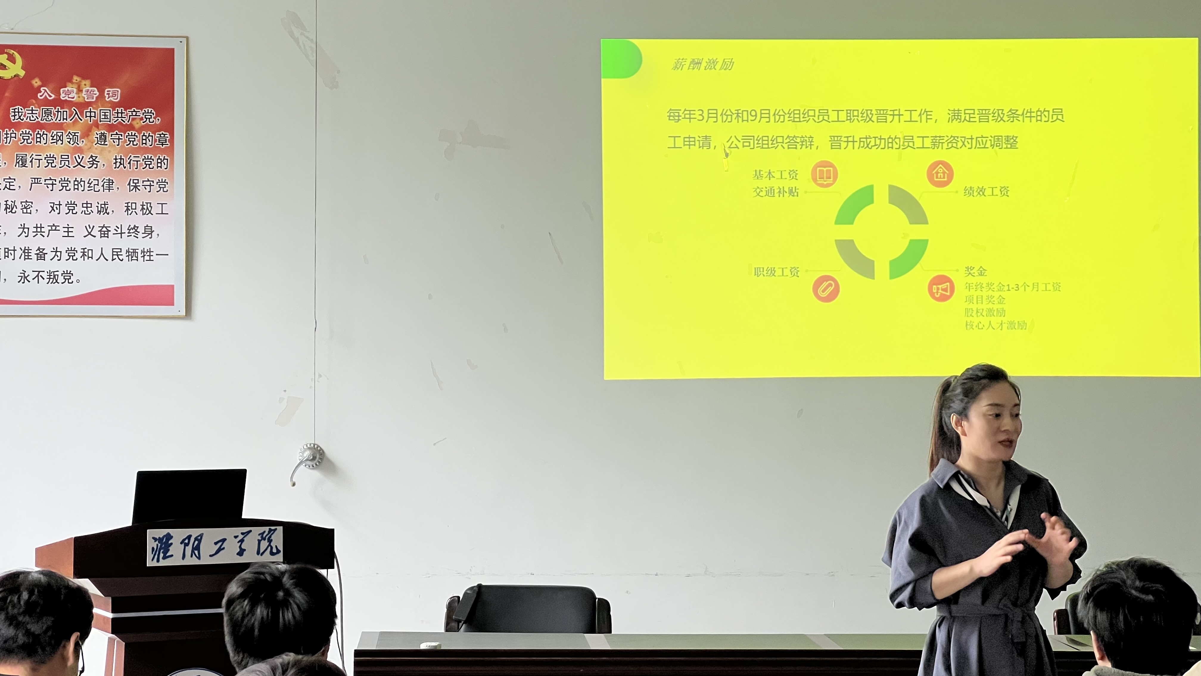 招聘会上,公司负责人首先从公司本身出发,向毕业生分别介绍了公司的技术架构,核心专家,行业前景,业务范围等等,充分地展示了公司的优势以及发展方向,其中其系统部,设计部,工艺部的岗位需求给毕业生提供了广阔的就业空间。接着,又从薪酬,工作环境,团建活动等方面展现了公司优厚的待遇。最后,王程老师带领同学们积极向公司负责人提问互动,了解情况,有意者向公司投简历,进行面试。