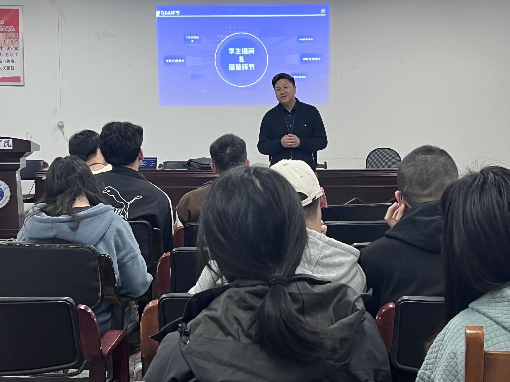 招聘会上,公司负责人许经理通过公司的宣传片向大家展示了顺丰集团的整体情况,接着通过PPT向大家具体介绍了顺丰集团的业务范围、招聘条件、薪资待遇等。随后,校园招聘张经理,一位毕业于淮工的学长,他邀请同学积极提问并作出了详细的回答。他欢迎同学们添加经理们的联系方式,以进行进一步沟通。