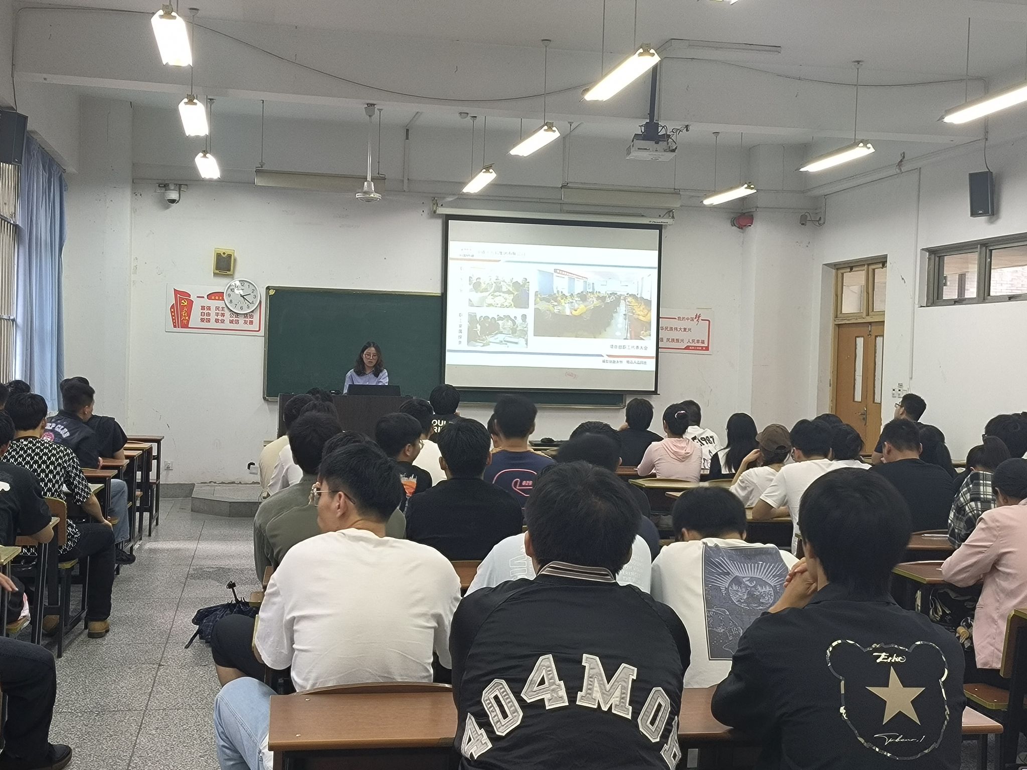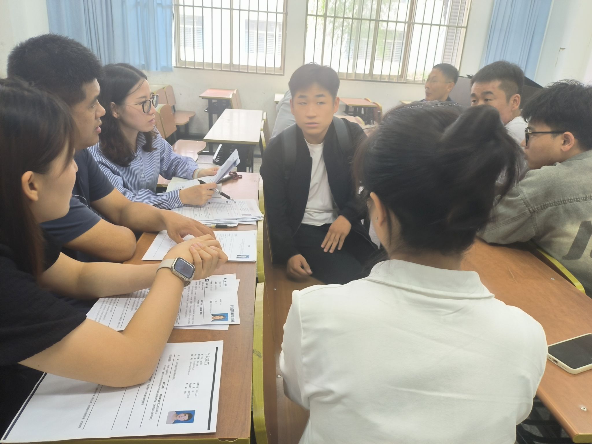 招聘会上,公司负责人首先通过播放宣传片和展示PPT向同学们介绍了公司的起源、发展以及业务范围等情况。接着对公司的薪资待遇、工作流程又进行了详细的介绍,真诚地解答同学们的疑问。最后,有明确入职同学们向公司投递了简历,并以5-6人为单位与负责人进行进一步交谈。