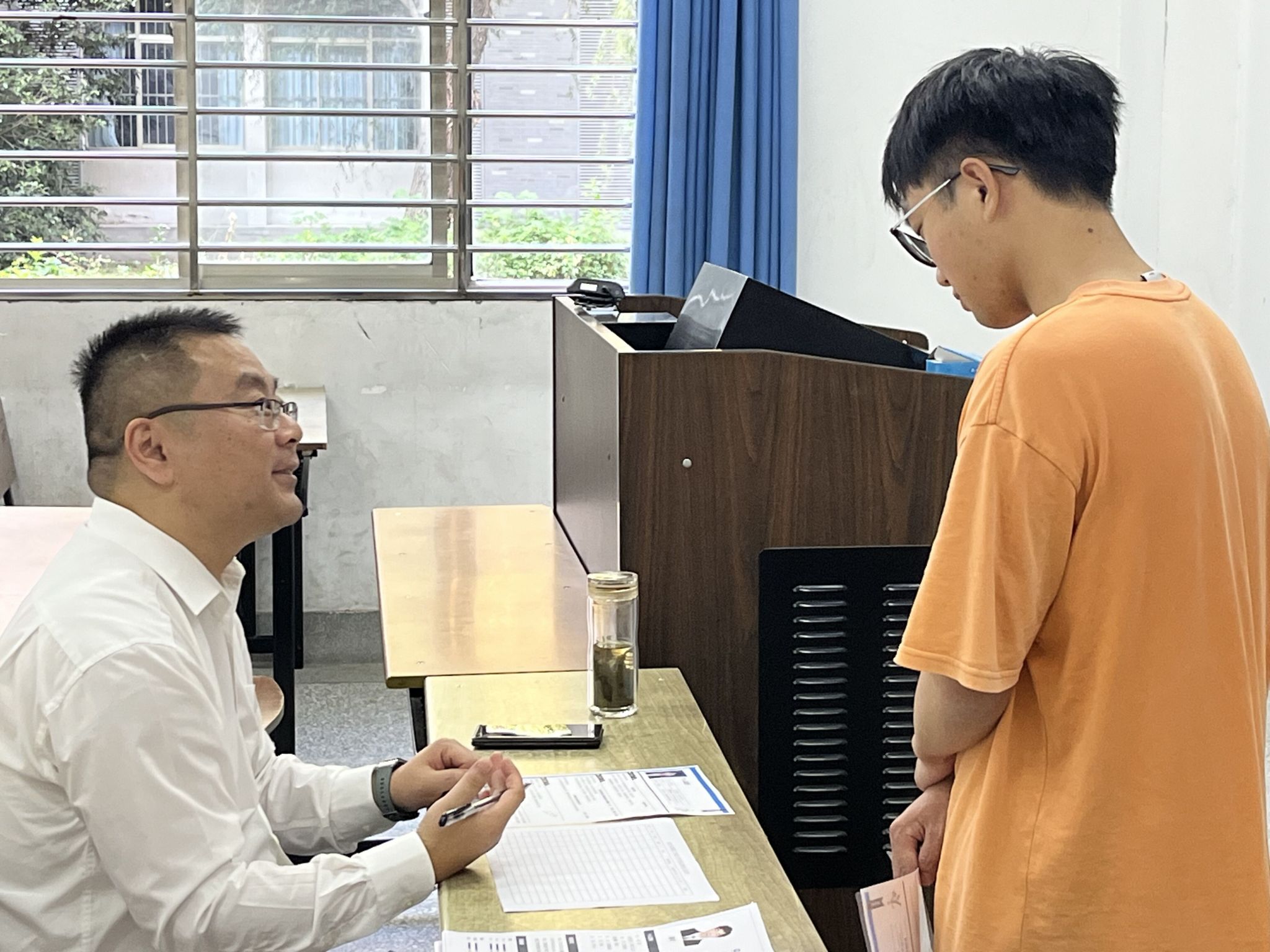 江天集团此行目标招聘十人左右,公司负责人详细地为同学们讲解了公司的主要业务、薪资待遇、工作内容等内容。同时,此次招聘会将交通运输专业为一组,车辆、汽服专业的同学为一组,不同的技术部分别对各专业提交简历的同学们一对一展开了交流面试。