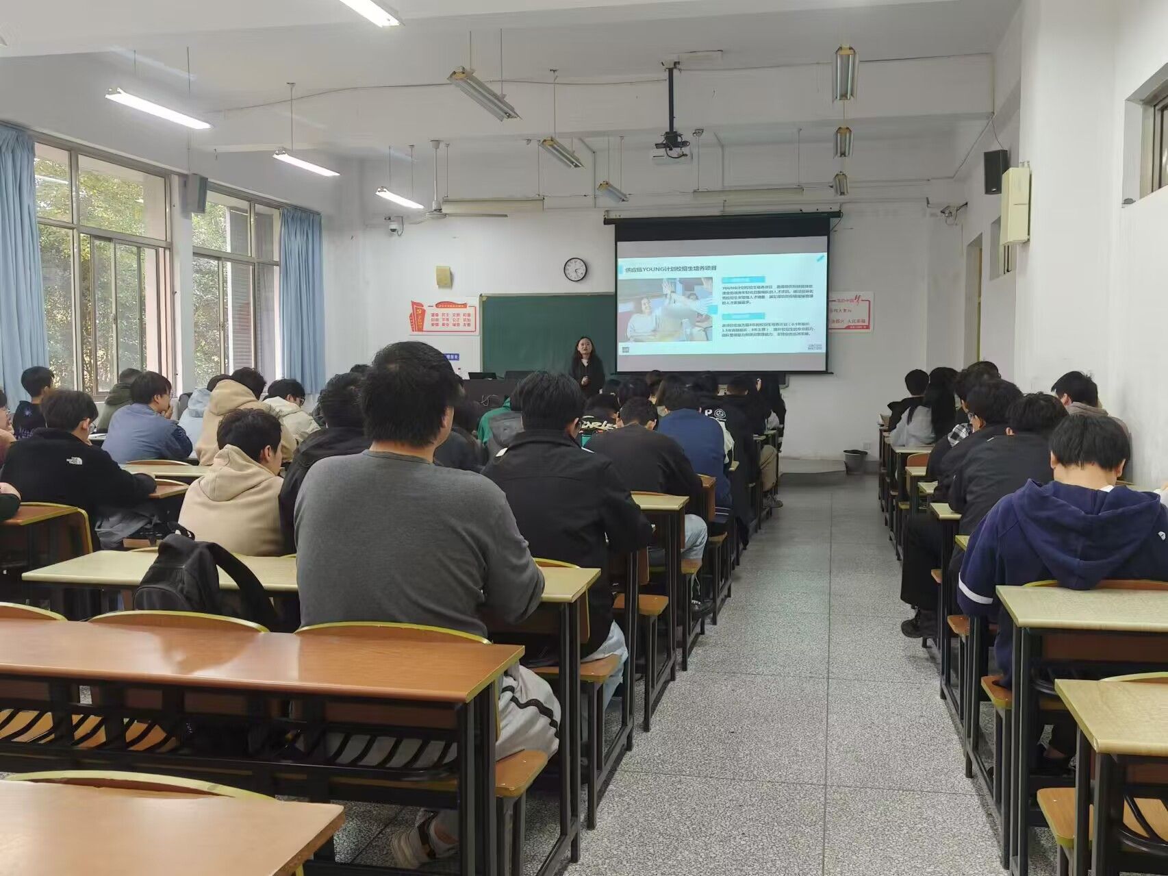 招聘会上,经理首先介绍了供应链YOUNG计划项目,YOUNG计划校招生培养项目是得物App供应链现场管理业务培养年轻化后各梯队的人才项目。然后分别从员工管理、公司福利以及活动、薪资待遇等方面为同学们做了充分的解说。