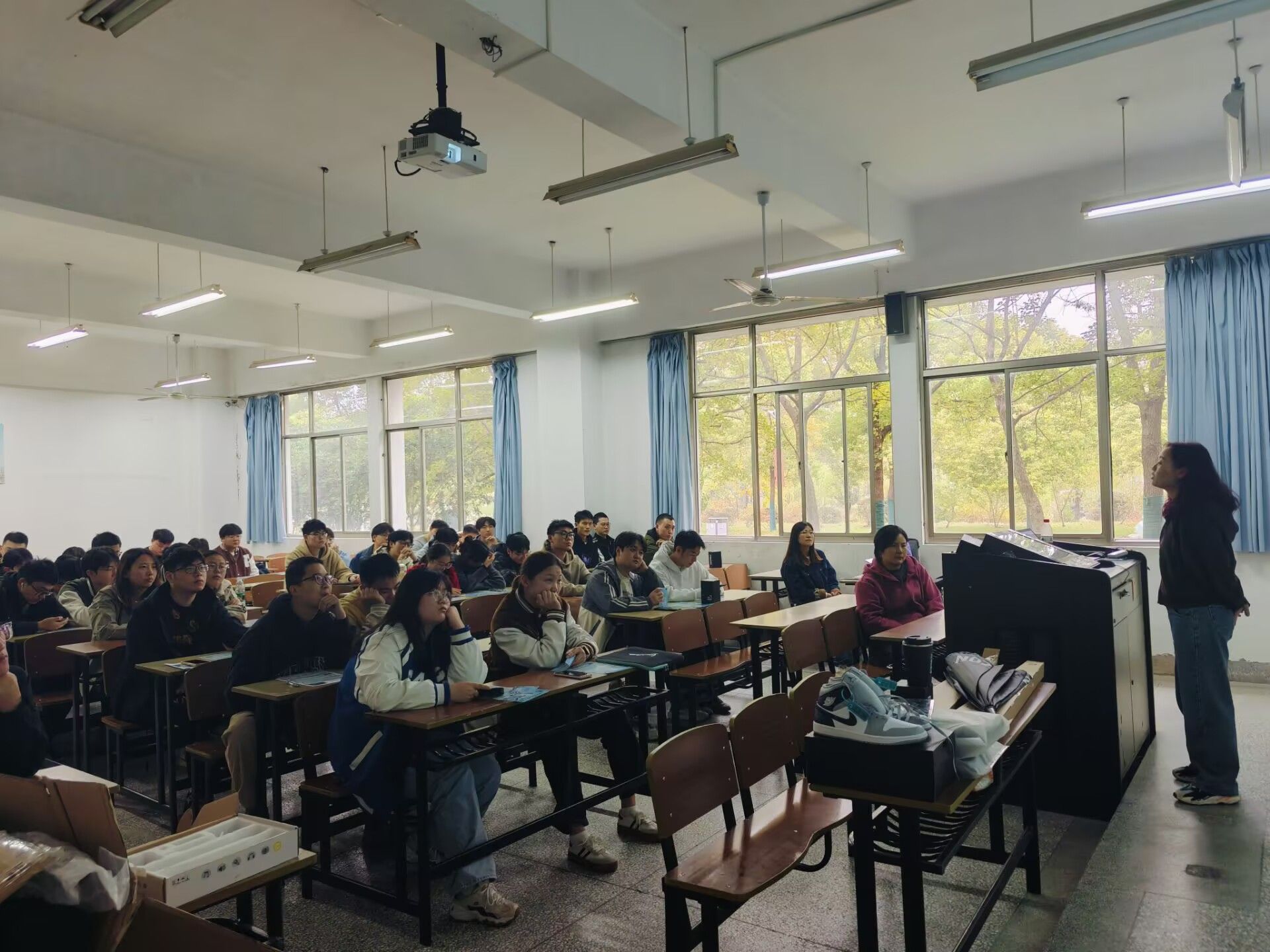 此外,现场还举办了一些抽奖问答活动,大家热情高涨,积极参与。在临近尾声之际,同学们兴致颇高,纷纷提出了自己的问题,三位负责人也是细致认真的为员工解答。