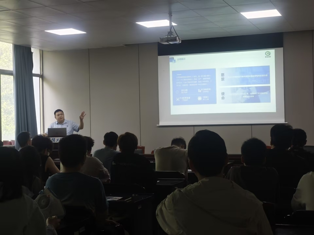 招聘会上,销售总监王福才首先介绍了公司研究方向与研究内容,其公司在车内皮革技术与新材料方面有重大市场。然后分别从员工管理、公司福利以及活动、薪资待遇等方面为同学们做了充分的解说。