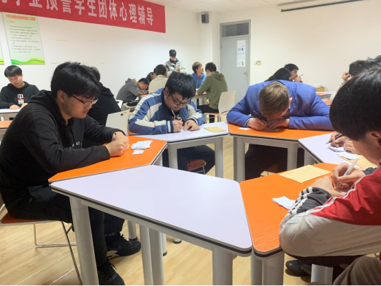 活动开始,桑书记向各位同学介绍了开展本次活动的目标:通过对心理问题导致多门挂科的同学进行心理辅导,帮助同学树立正确的学习观,激发学习动力,从而顺利完成学业。桑书记表示:老师会以员工为本,针对每个同学的不同情况,具体分析,找出对策,制订计划,不遗余力地帮助他们,争取早日把成绩提高上去。接着,开展团体活动:首先是热身活动“同舟共济”游戏,在游戏互动中同学们迅速互相熟悉,气氛升温。通过这个游戏,同学们体会到团队合作的重要性。其次是“我问你答”活动,同学们将自己的问题、困惑写在纸上,然后互相交流,寻找答案。第一项活动瞬间打开了同学们的心扉,同学们都积极主动的向老师表达自己在活动中的感受,观察员们也感觉到原本有些陌生、拘谨的同学变得放松了。通过第一项活动的热身,第二项“你问我答”环节开展地很顺利,同学们认真解答彼此之间的问题,也在解答问题的过程中寻找自己需要的答案。在整个活动过程中,桑书记与项老师持续关注各位同学的实时动态,并运用心理学知识引导同学们发现问题,表达问题,解决问题,真正做到了为同学办实事。