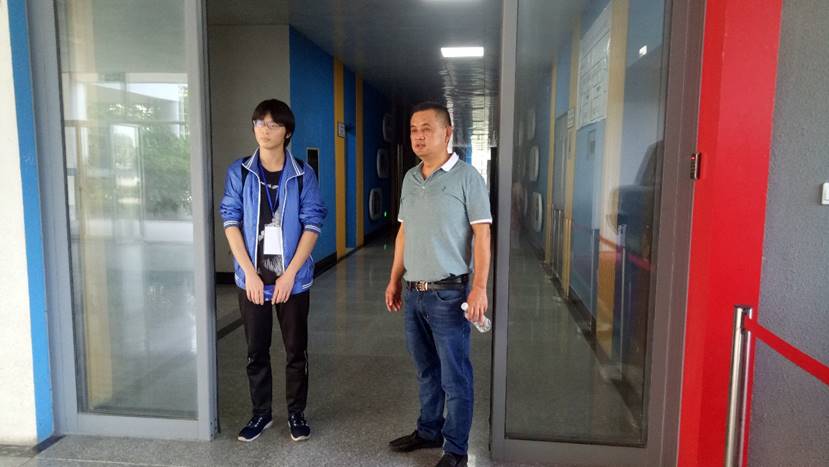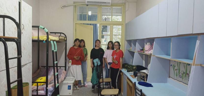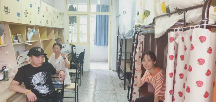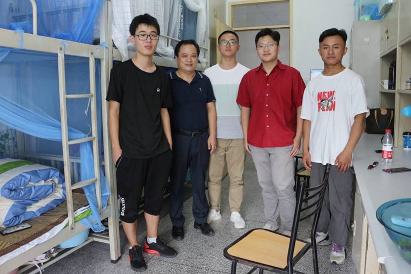 党委副书记余文明与宿舍管理员交流宿舍管理问题并提出建议