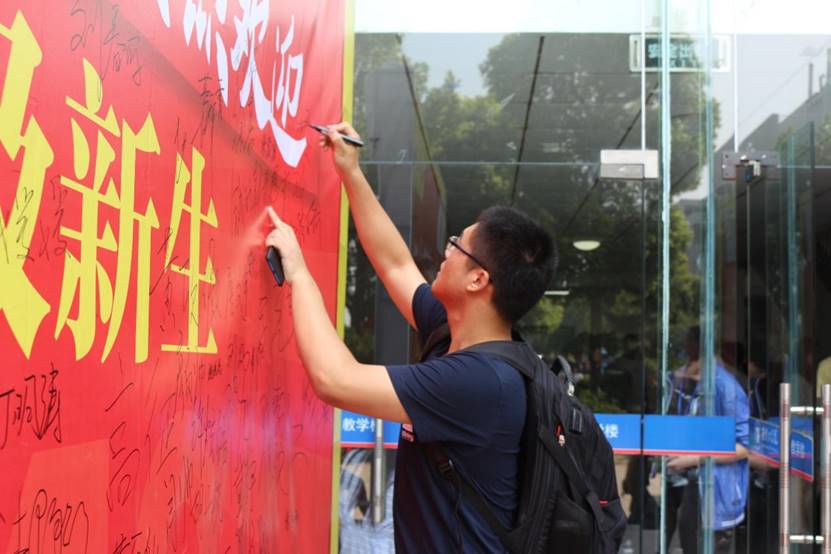 2019级新生在必一运动bsport体育签字板留下进入大学的第一个印记
