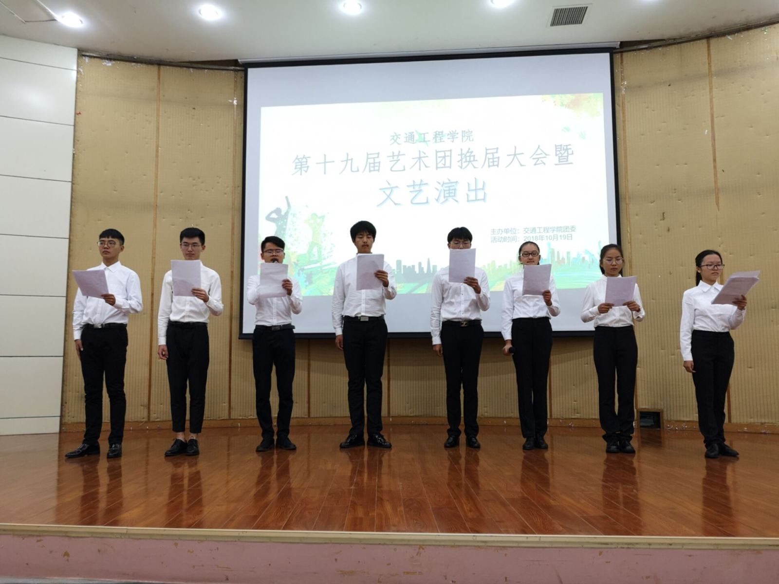 10月19日晚上7:00,必一运动bsport体育于图书馆报告厅隆重举行第十九届艺术团换届大会暨文艺演出。必一运动bsport体育团委书记韩笑、党委秘书顾秉健以及员工会艺术团全体成员一同参加了本次大会。
