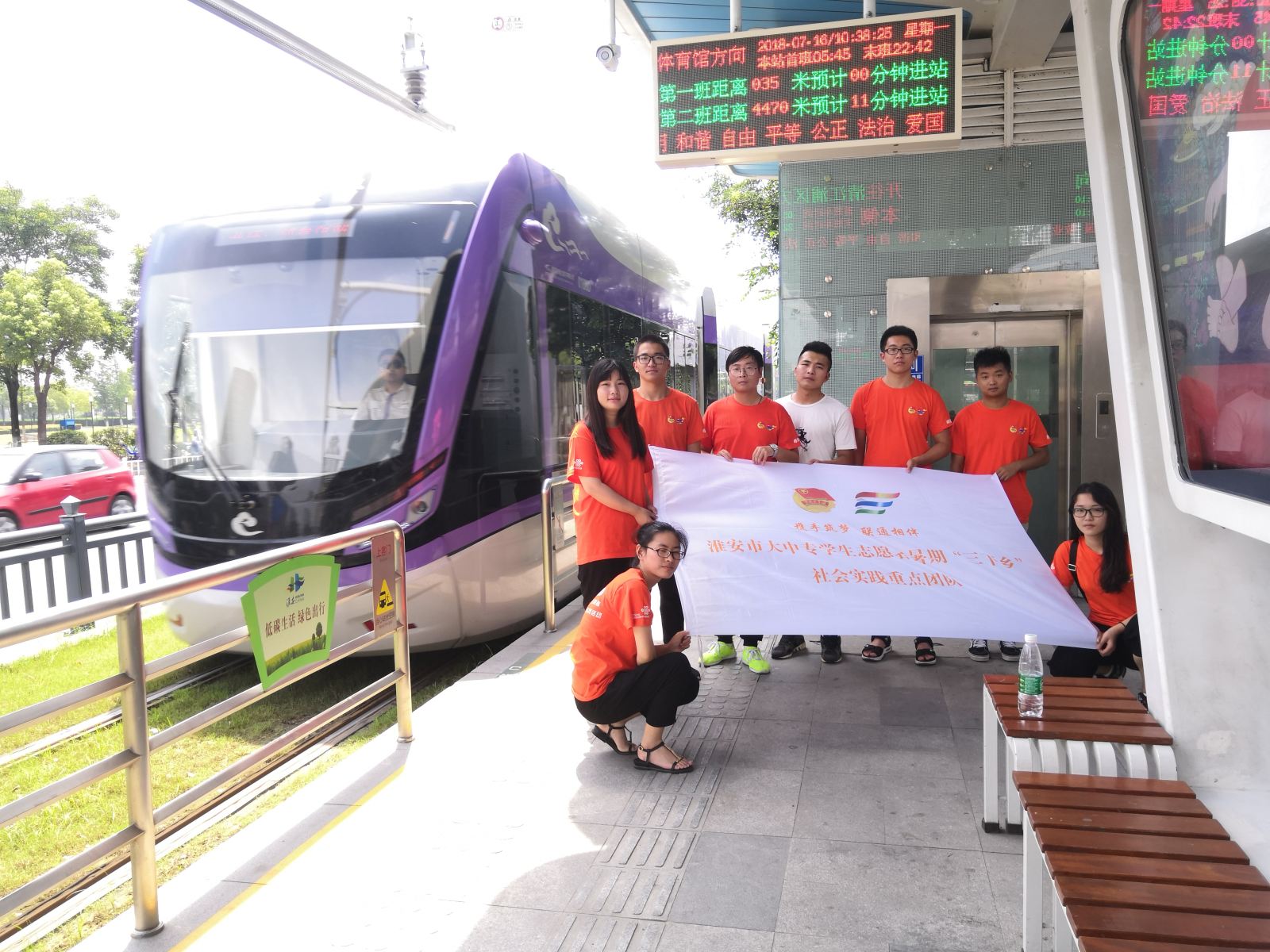 “优化轨道交通,共创文明城市”文明交通小队分别在淮海东路站、运河广场站、水渡口站、河下站等各站台收集有轨电车进出站时间、乘客上下车时间、电车等待红绿灯时间,为后期数据分析做准备。此外,小队前往人口密集地区就不同年龄段、不同职业的人群进行抽样调查,就准点、内务环境、乘车舒适度、乘客上下车秩序安全、乘务员服务态度等进行民意采集。小队利用所学的专业知识通过实践完成一份调研报告,力争能够为公交企业进一步改善服务和采取针对性的营运措施提供数据依据,促进淮安市有轨电车的建设和未来的发展。