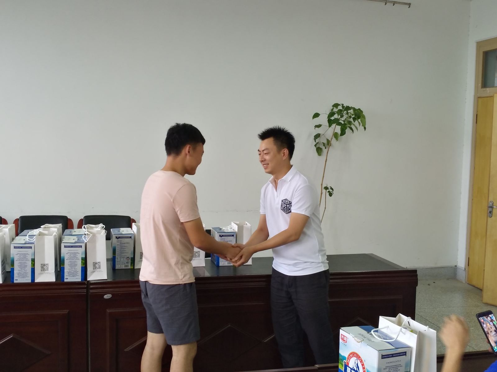 活动开始,公司党委书记徐才千发表讲话,表达了对同学们的关心,并提出殷切希望,祝愿同学们在期末考试中取得理想成绩。随后,辅导员项巍老师和杨柳青老师共同为同学们发放慰问品。慰问品有酸奶、花露水、毛巾、牙膏、香皂等夏季日常生活必需品。