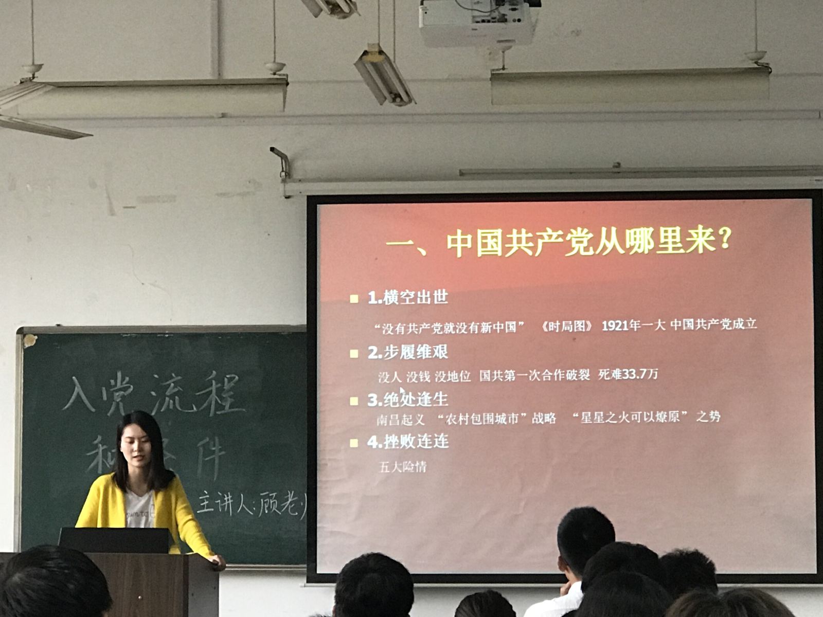 第一课,徐书记组织同学们积极学习探讨了员工“春天里的来信”,并给在场同学提出许多宝贵的意见,内容充实而深刻,极具思想性。第二课,项巍老师在课上回顾了党光辉而艰辛的岁月,提出“不断改革,永葆青春"的独到见解。第三课,顾秉健老师详细系统地介绍了中国共产党,让同学们了解到入党的基本流程与相关条件。第四课,杨柳青老师通过“如何以实际行动入党"这一切入点,结合自身的看法和经验,为本次党课培训画上圆满的句号。
