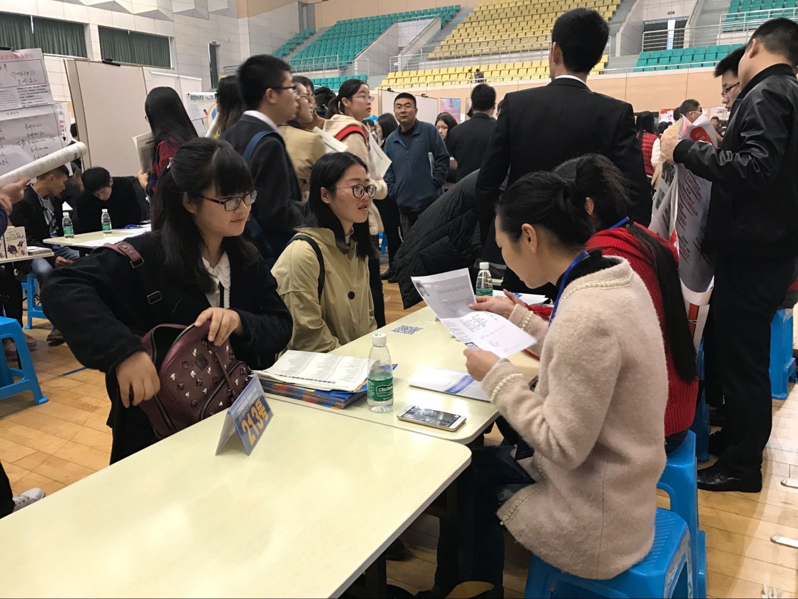 在招聘会现场,气氛良好,秩序井然,公司应届毕业生们都手持自己精心准备的推荐书和简历,自信地穿梭在人群之中,积极与招聘人员交流,主动了解用人单位情况,向心仪的招聘单位投递简历并进行现场面试。而招聘单位的工作人员也都面带微笑,不紧不慢地为应聘者解答疑惑,会场中各处充满着严谨认真的气息。
