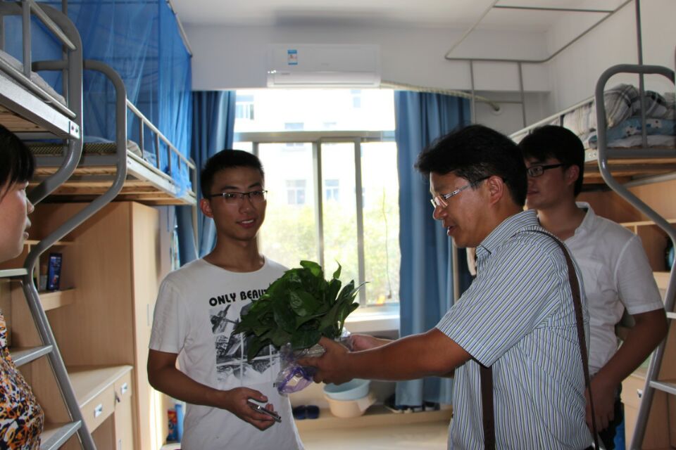 交流会结束后,与会的所有领导一齐去参观了新生宿舍,与入住新生进行了亲切的交流,关心他们的入住情况,并亲自向每个宿舍赠送了一盆绿萝。祝愿孩子们像绿萝一样健康快乐,生机勃勃。