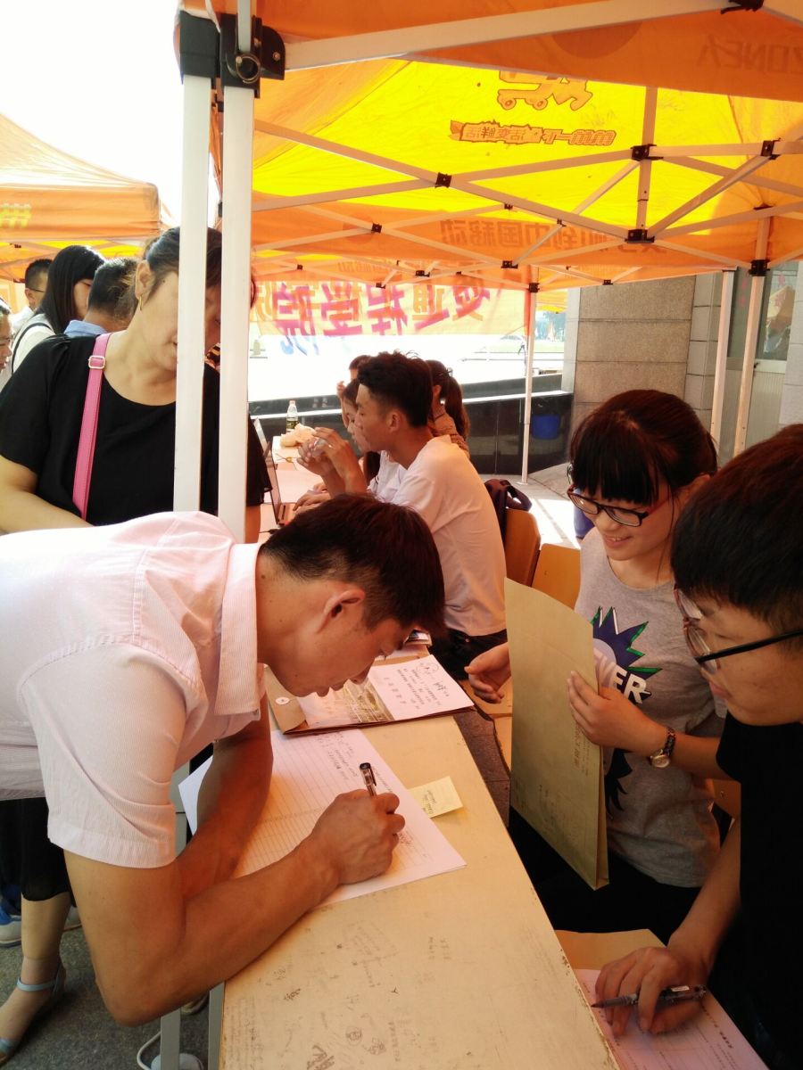 接待新生的汽车刚刚停下,一张张笑脸便迎了上去,亲切地问候着,欢迎新生的到来。负责迎新的学长学姐们接下新生和家长手中沉重的行李,并一对一带领着新生办理入学的各项手续,秩序井然。