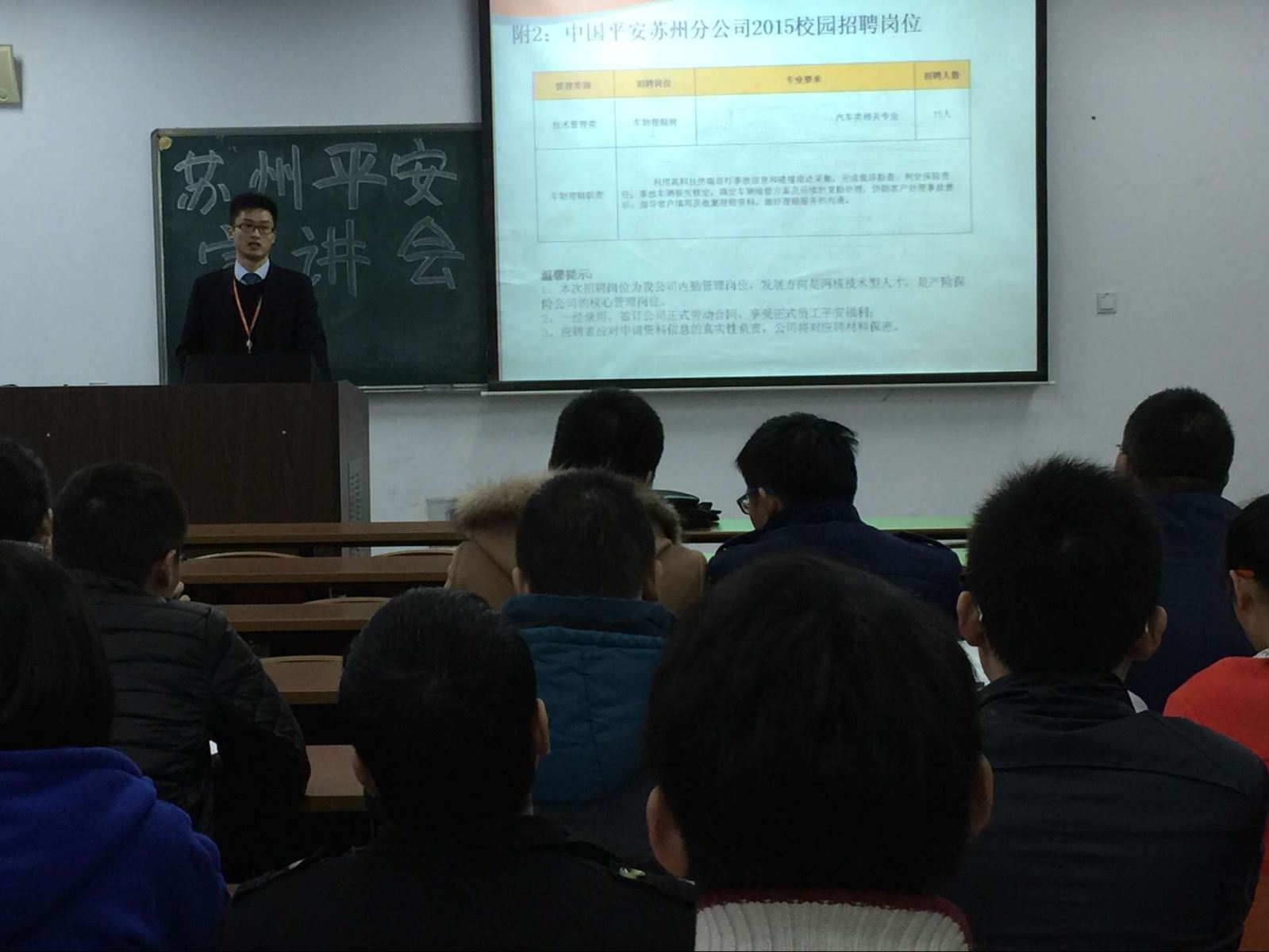11月18日下午两点,必一运动bsport体育在22#304成功举办苏州平安集团招聘会。本次招聘会由创业就业部组织,平安集团陈伟贤担任主讲人。30余位大四应届毕业生参加了招聘会。
