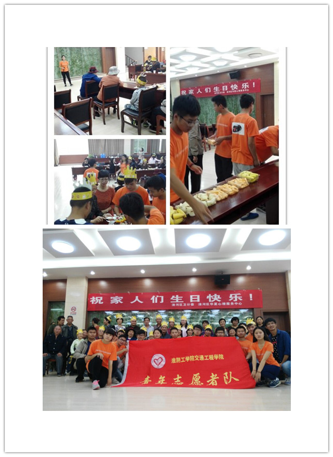 九九重阳节,浓浓敬老情。为弘扬中华美德,传播社会正能量。交通工程院“红跑车”志愿者队于10月24日下午2:30携手社会各界志愿者、华夏公益组织及计生家人参与本次“金秋庆重阳,相聚生日会”活动。