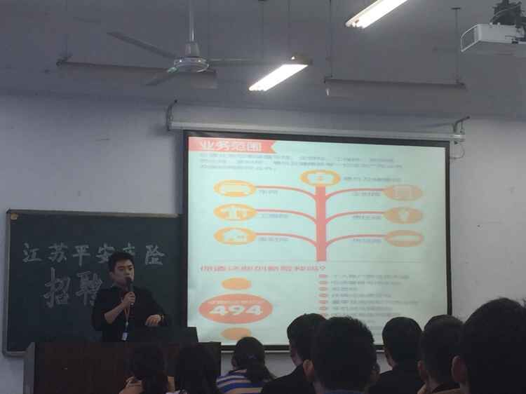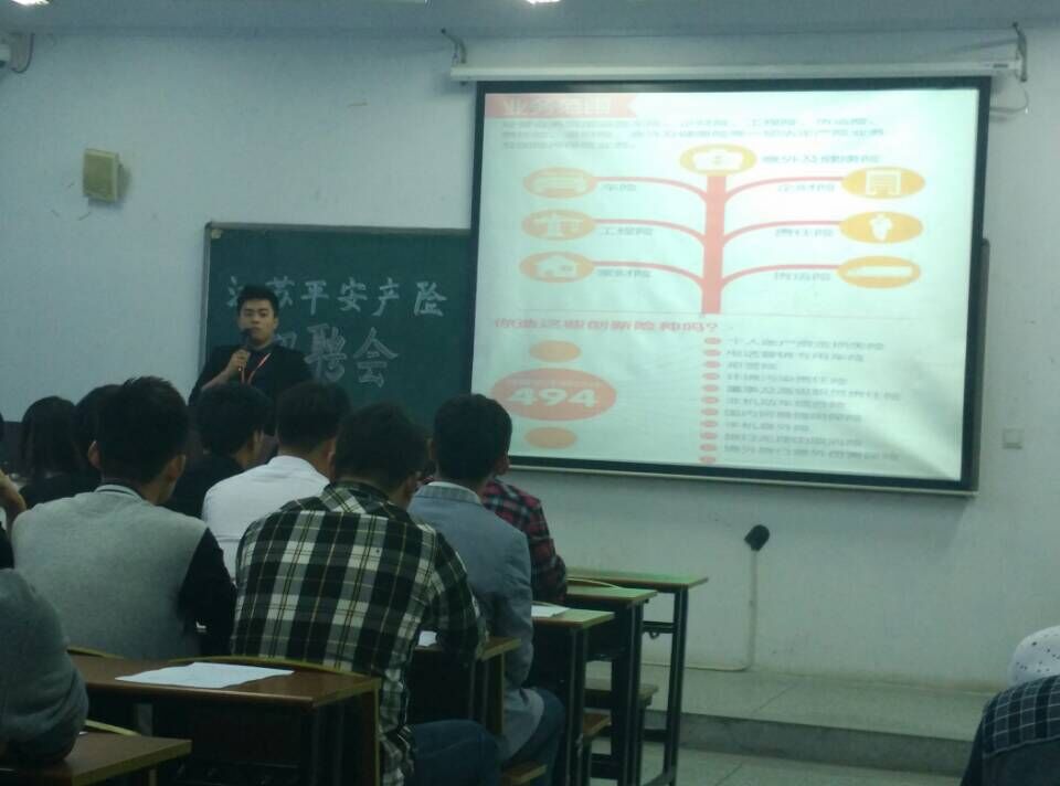 10月21日下午2:00,必一运动bsport体育在22#104成功举办江苏平安产险招聘会。本次招聘会由创业就业部组织,平安产险张吉担任主讲人。公司党委副书记桑海云、平安产险徐嵩经理、王亮经理、李岳主任与众多大四应届毕业生一同参加了本次招聘会。
