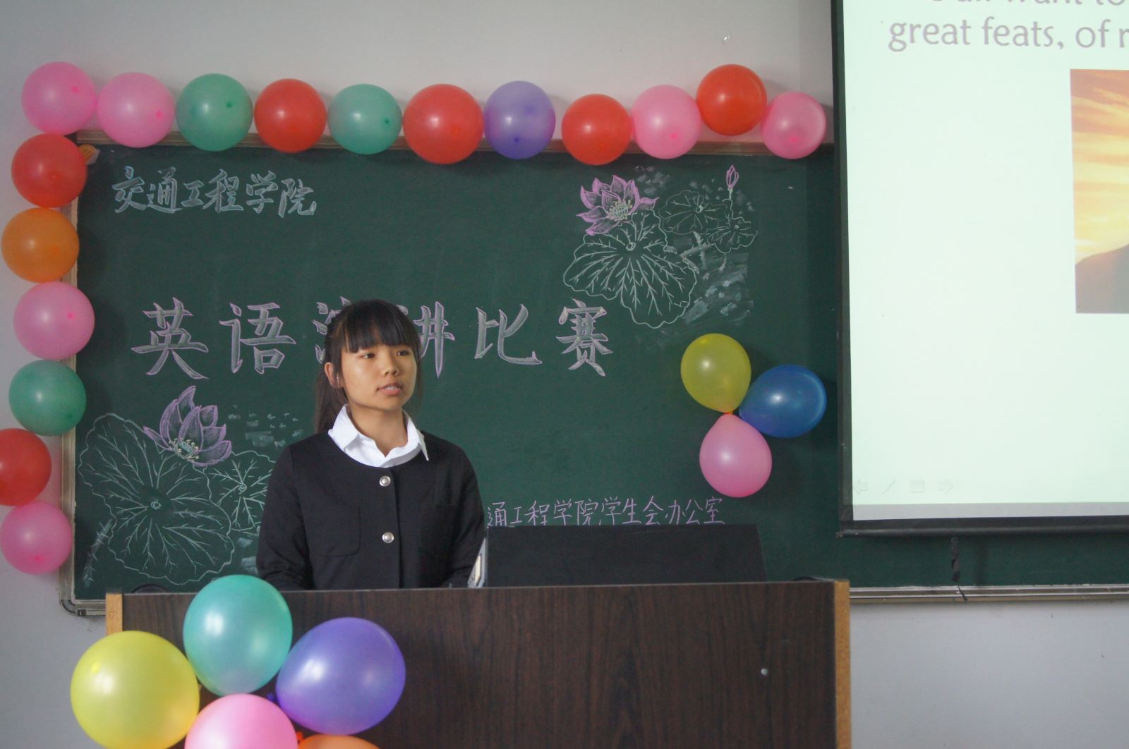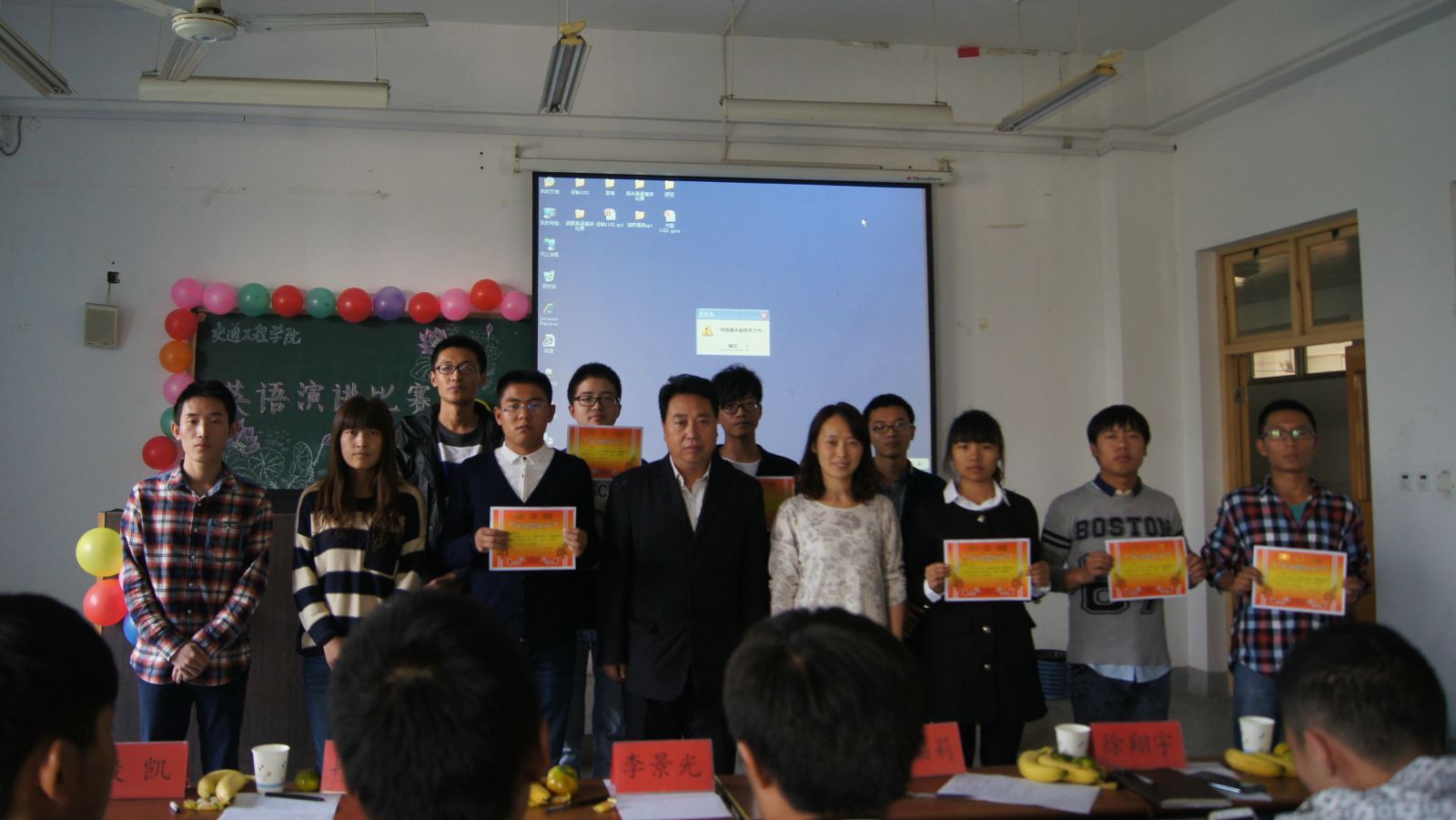 共有11支队伍参加了本次英语演讲比赛,在采取抽签形式安排了出场次序后,大家一一上台展示。在一个多小时的角逐中,选手们在舞台上尽情挥洒才情,侃侃而谈。比赛结束后李景光老师和殷凯同学分别对比赛进行了精彩点评,并对选手现场表现的优缺点进行了专业分析,使参赛同学从中收获了许多实用的英语演讲技巧和锻炼英语口语的方法。最终交通1151获得一等奖,运输1142、运输1152队伍一获得二等奖,道桥1151、汽服1142、运输1152队伍二获得三等奖,比赛在同学们热烈的掌声中落下帷幕。