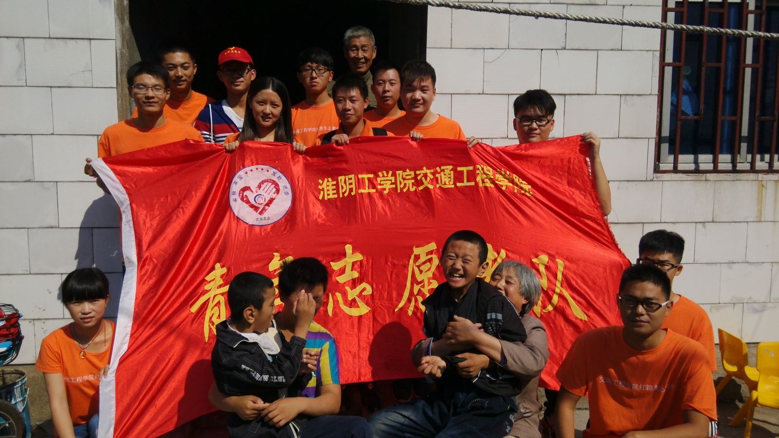 孩子们、老人和志愿者们的笑容绽开在美丽的十月,手心相牵,爱心传递,红跑车志愿者队矢志不渝。