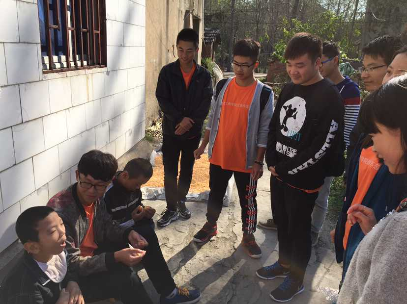不一会儿,志愿者们到达了蔬菜村,远远的就能看到在门口迎接志愿者的孩子们和爷爷奶奶。志愿者贴心地给孩子们带来了水果和饼干。孩子们吃着志愿者剥的橘子笑得合不拢嘴,他们不会说话却用最纯真的笑脸向志愿者表达着他们内心的喜悦与谢意。很快,志愿者们就和孩子打成一片,教他们折纸飞机、骑自行车,陪他们散步等等。孩子们和志愿者玩得不亦乐乎,在一旁看着这一切的奶奶眼里闪烁着泪花,无疑,长辈对孩子一如既往的照顾是最辛苦的,他们同样也是伟大的。志愿者们也帮爷爷奶奶剥青豆,晒被子,爷爷奶奶很高兴。美好的时光总是短暂的,志愿者们向孩子们和爷爷奶奶一一道别,并表示还会再来看望他们的。