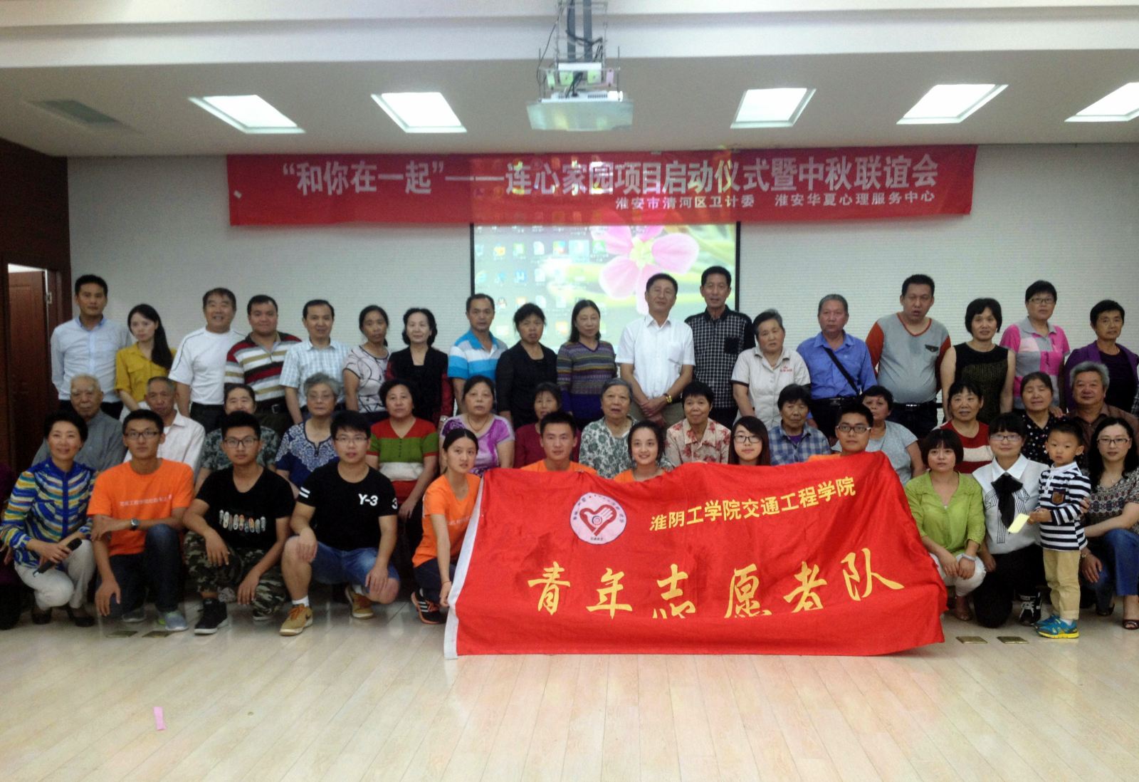 9月25日,下午2:30,必一运动bsport体育红跑车志愿者队来到淮安市职业培训中心与众多失独老人共同参加了由淮安华夏心理服务中心主办的“和你在一起”——连心家园项目启动仪式暨中秋联谊会。
