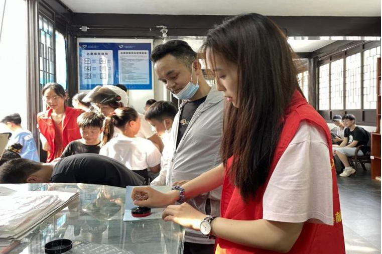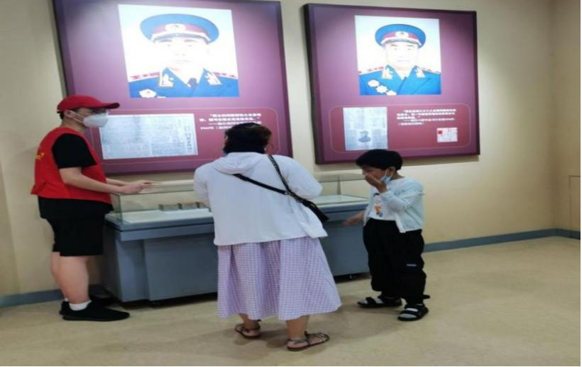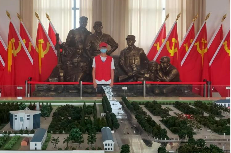 赴苏皖边区政府旧址的队员们参观了苏皖边区革命史陈列和革命烈士生平事迹陈列。参观结束后,队员们开始了自己的志愿者服务工作——疏导馆内游客并帮助工作人员进行打卡盖章工作。