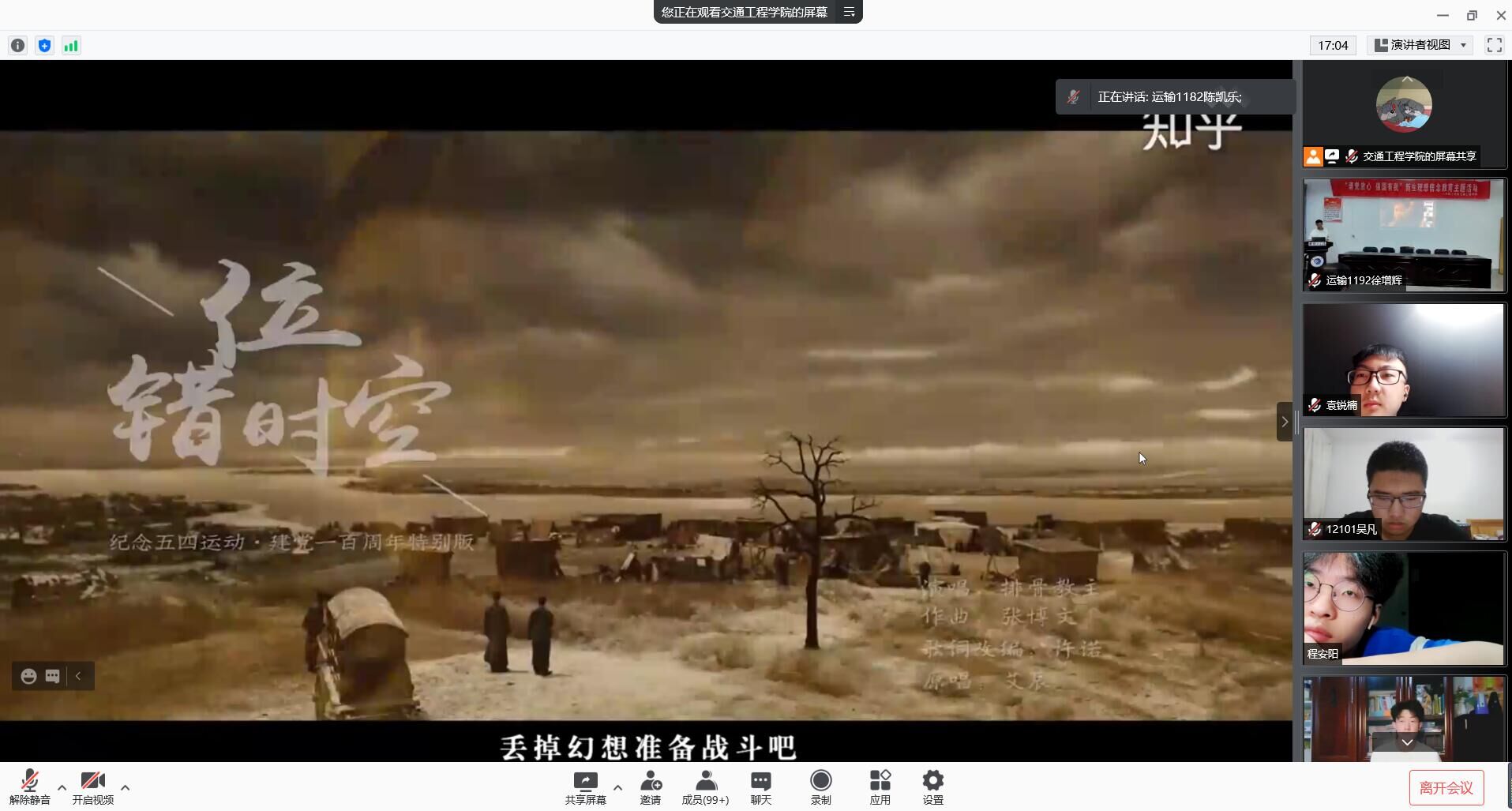 习近平总书记强调:“全党同志要做到学史明理、学史增信、学史崇德、学史力行。”为了让新生在建党百年之际更好的树立理想信念,公司采用观看视频【错位时空·五四特别版】、诗歌朗诵《我骄傲我是中国人》、知识竞答三种形式,向新生展现百年来中国共产党砥砺前行书写着中国发展的新篇章,带领中国从风雨缥缈走到富强安定,生长于中国,拥有无数令人自豪的先辈与历史,吾辈青年更当自强,发奋学习,珍惜光阴,为中华之崛起而读书!而知识竞答的互动模式,让屏幕那一头的新生与现场的联系更加紧密。一个又一个历史书本上的知识随着答题被唤醒,那段峥嵘岁月仿佛浮现在眼前。