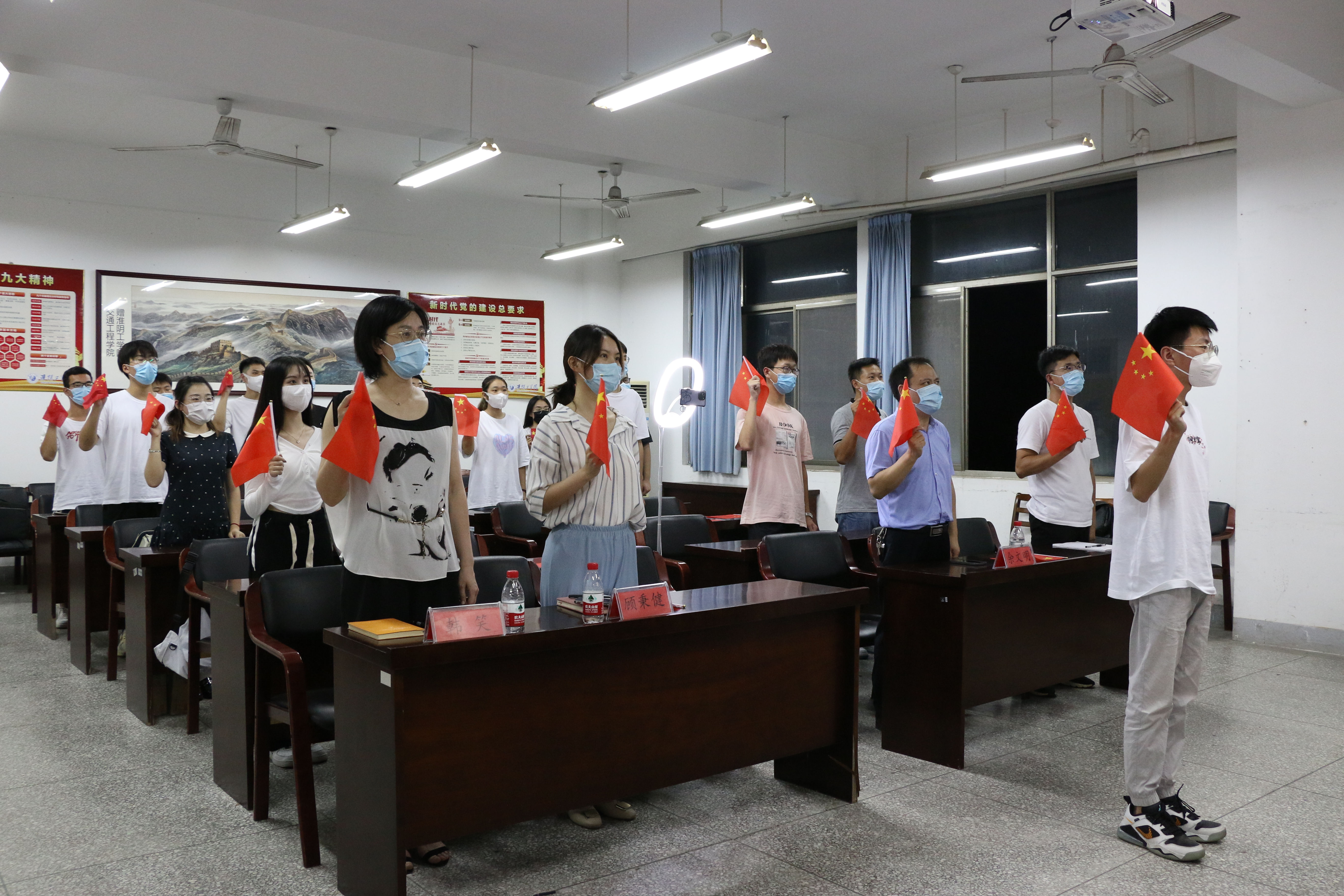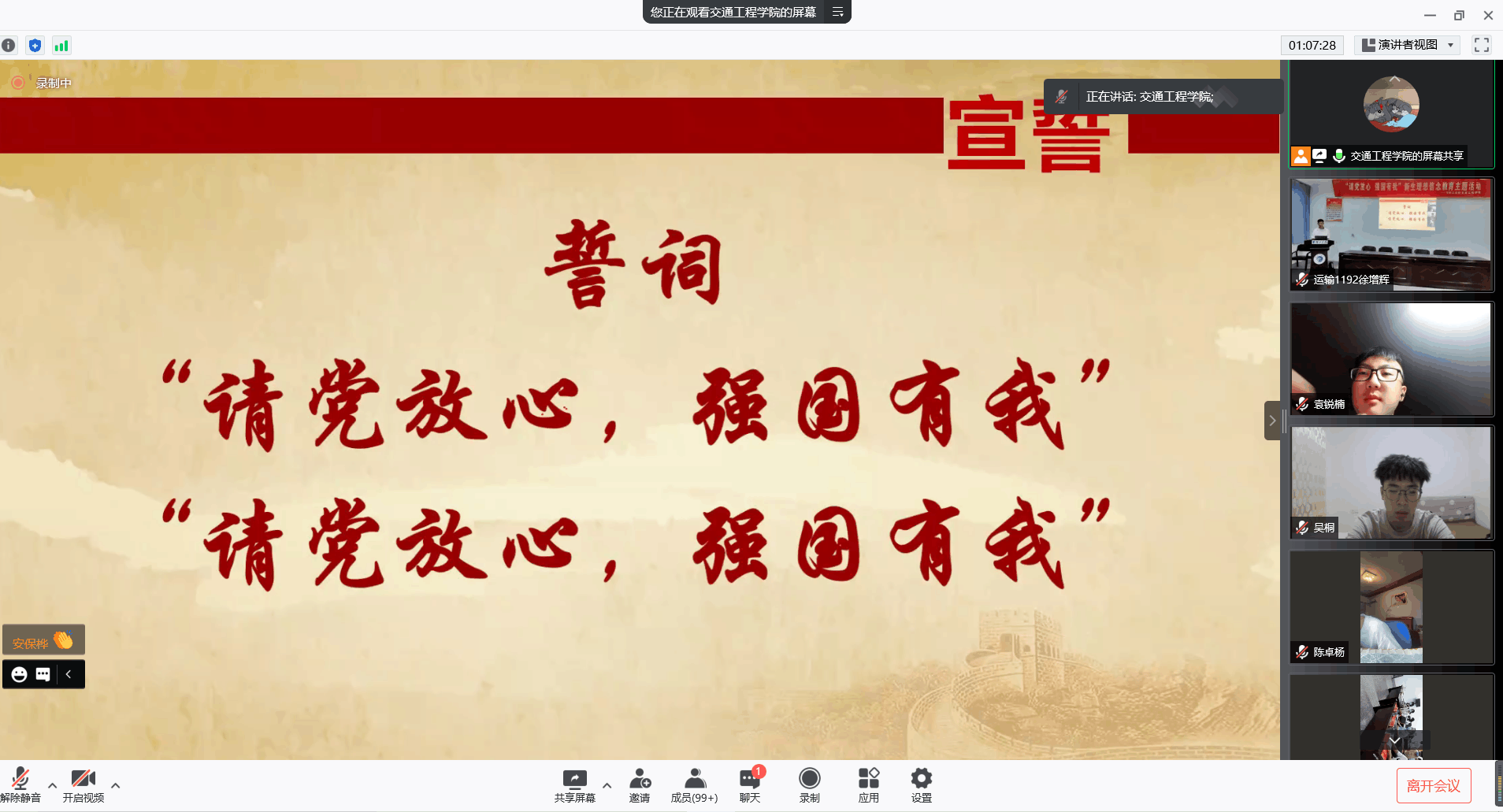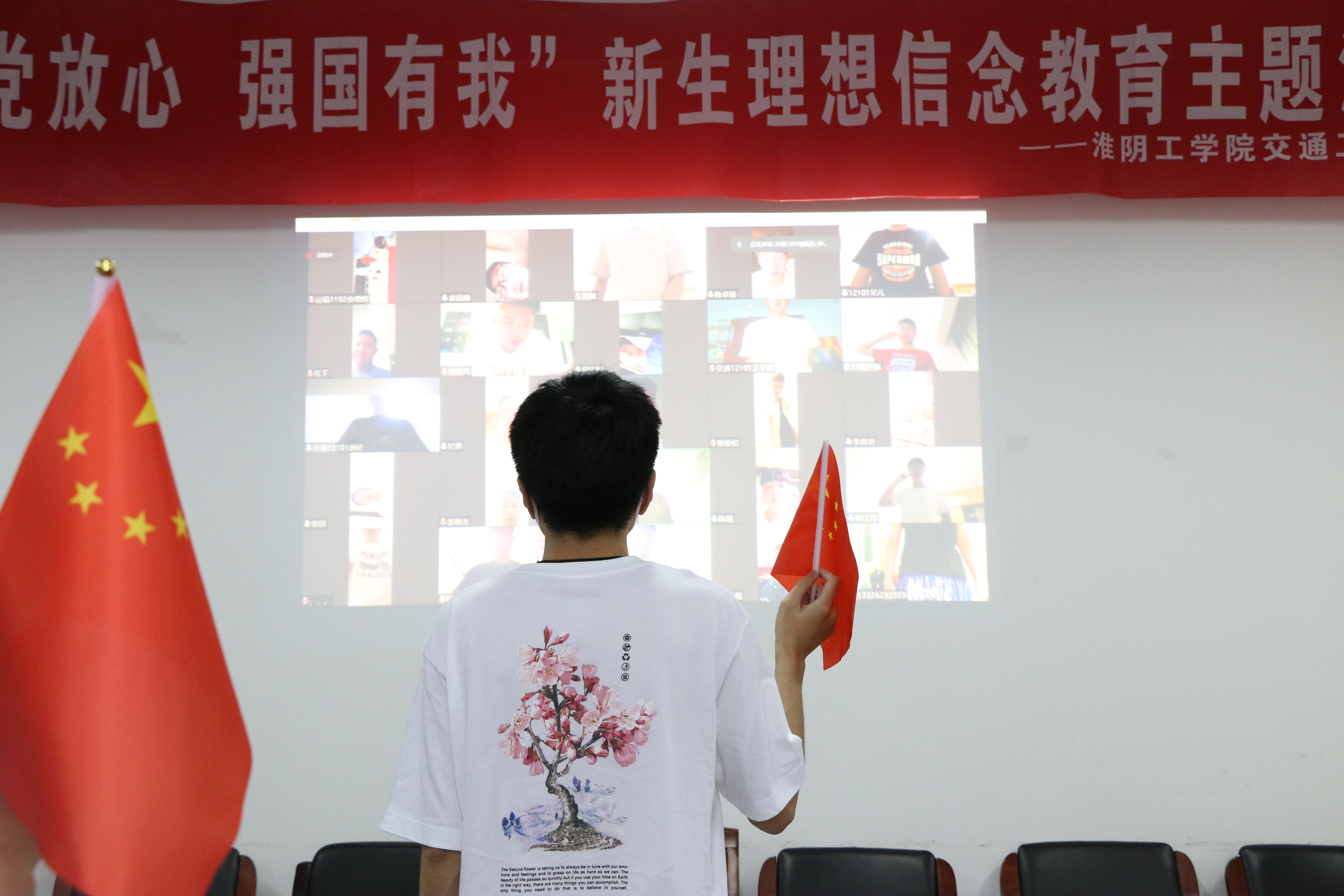 在主宣誓人的带领下,线下的老师、员工代表们,线上的新生们全体起立宣誓,在庄严的誓词中宣告青春的风采。