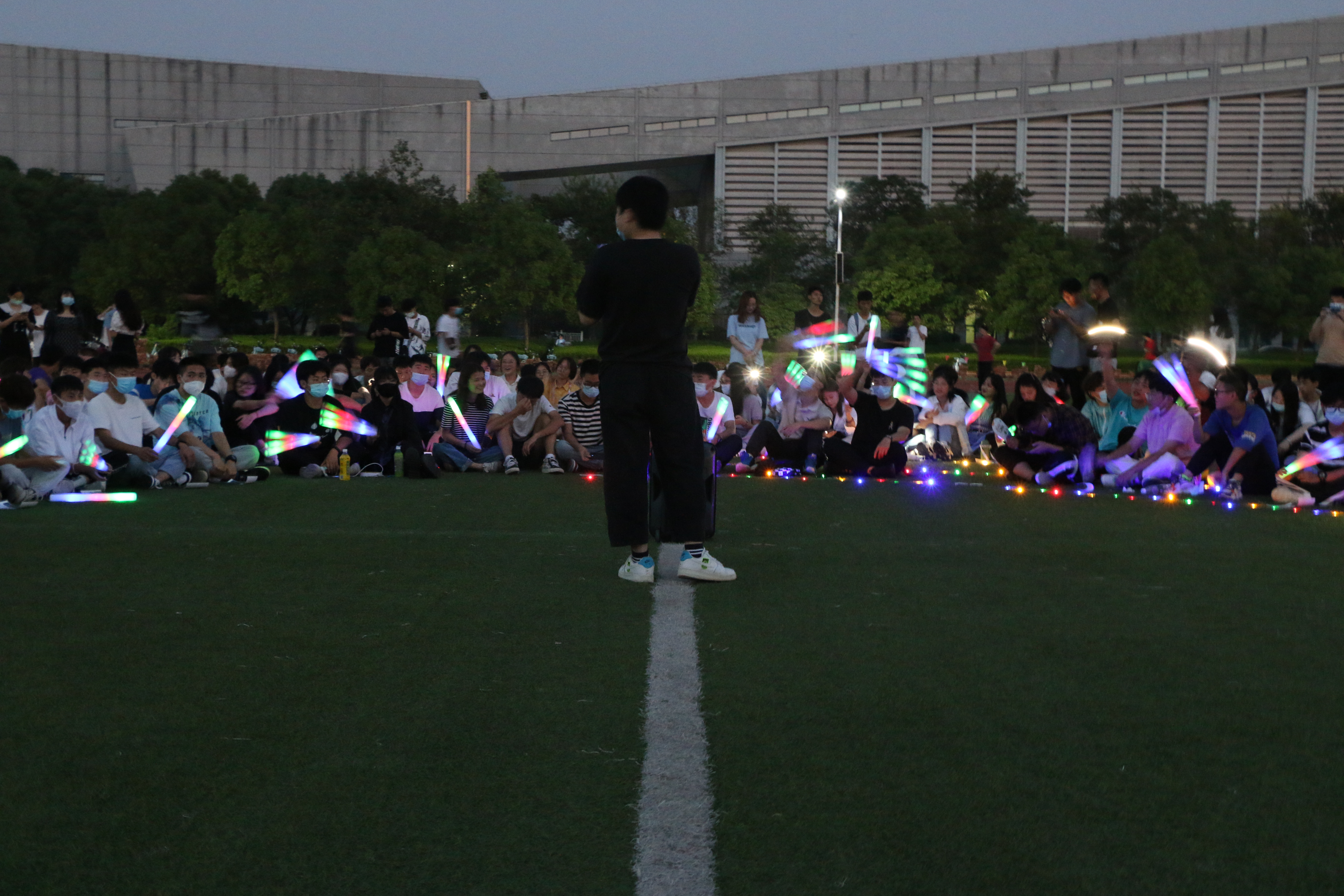 活动中,同学们在点点亮光中尽情地展示自己的才艺,独唱、舞蹈、合唱、吉他弹奏……操场上洋溢着青春的气息。才艺表演之余,猜歌名、抽奖等游戏也穿插在活动之中,现场氛围火热。通过以歌会友的方式,新生与老生之间有了初步的了解,同时也增进了同学间友情的培养,让同学们在学习之余通过丰富多彩的校园文化生活,心理上得到充分的放松,在展示自己兴趣爱好的同时,感受青春的热血与律动!