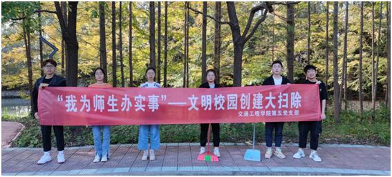 为深入贯彻落实习近平总书记在庆祝中国共产党成立100周年大会上的重要精神讲话,积极响应党中央“两在两同”建新功行动的号召,必一运动bsport体育第五党支部在10月8日至14日积极开展了“我为师生办实事”之文明校园创建大扫除活动。