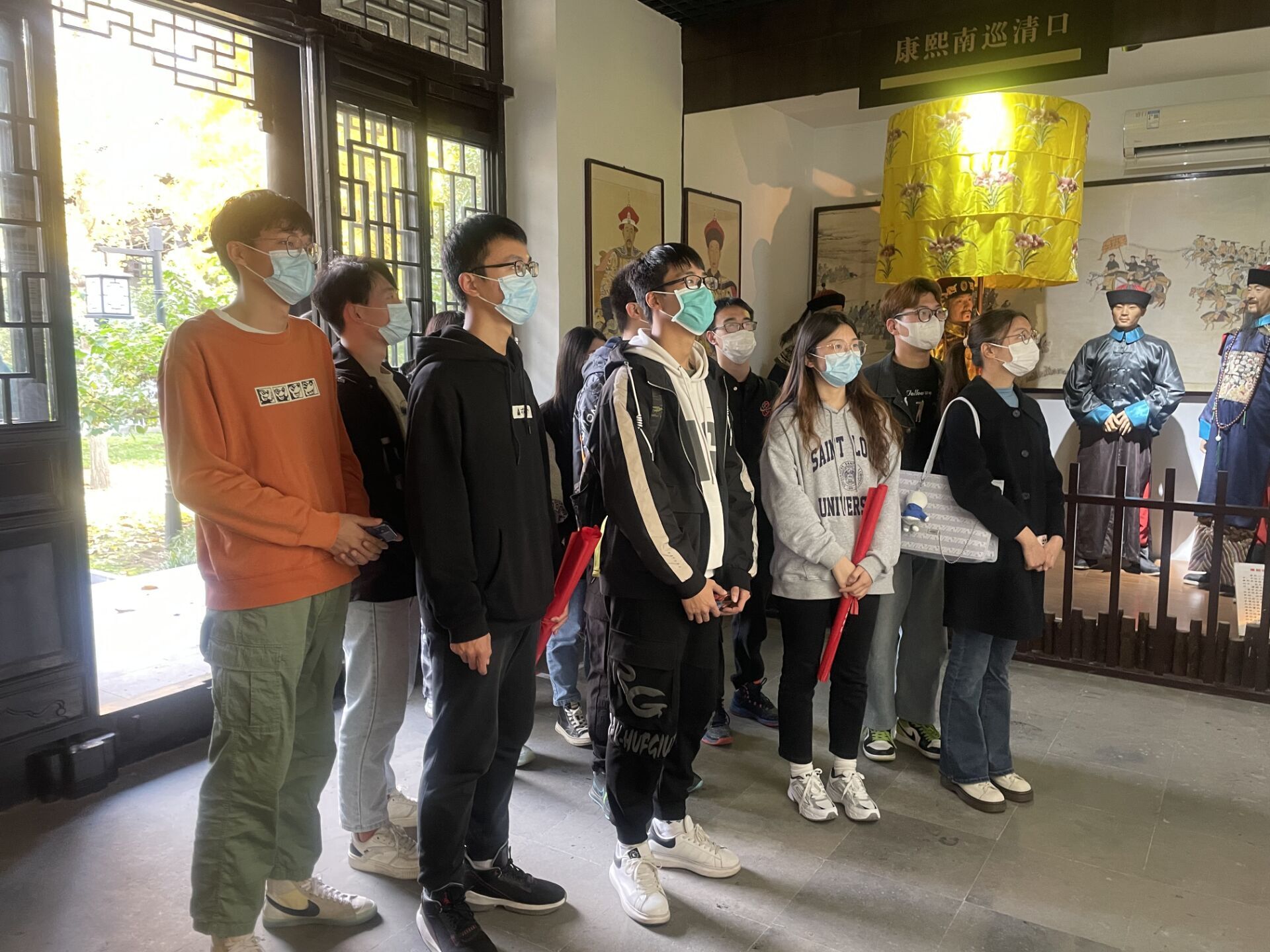 19日下午2点,党支部书记顾秉健老师带领大家来到清晏园参观学习。清晏园,寓意河清海晏、五谷丰登、人民安康,这正是百姓对美好生活最朴素的表达。清晏园内有一座御碑亭,亭内矗立的御碑四边龙纹盘错,上书“淡泊宁静”四个遒劲有力的大字,这是康熙帝赐予兵部尚书都察院右都御史总督河道张鹏翮的御碑,既是对其为官清正廉洁的赞许,也是对其督河工作的肯定。